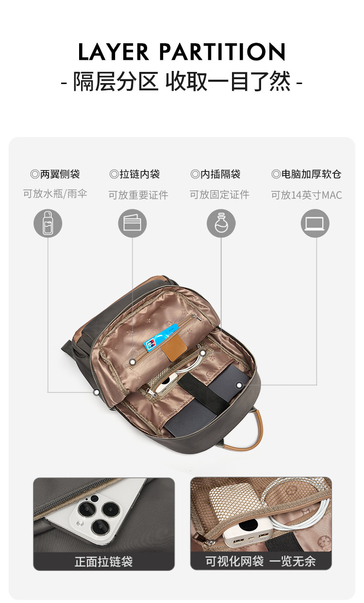 商品名称:五一出游双肩女背包时尚双肩包轻便大容量旅行背包电脑隔层双肩包 807063