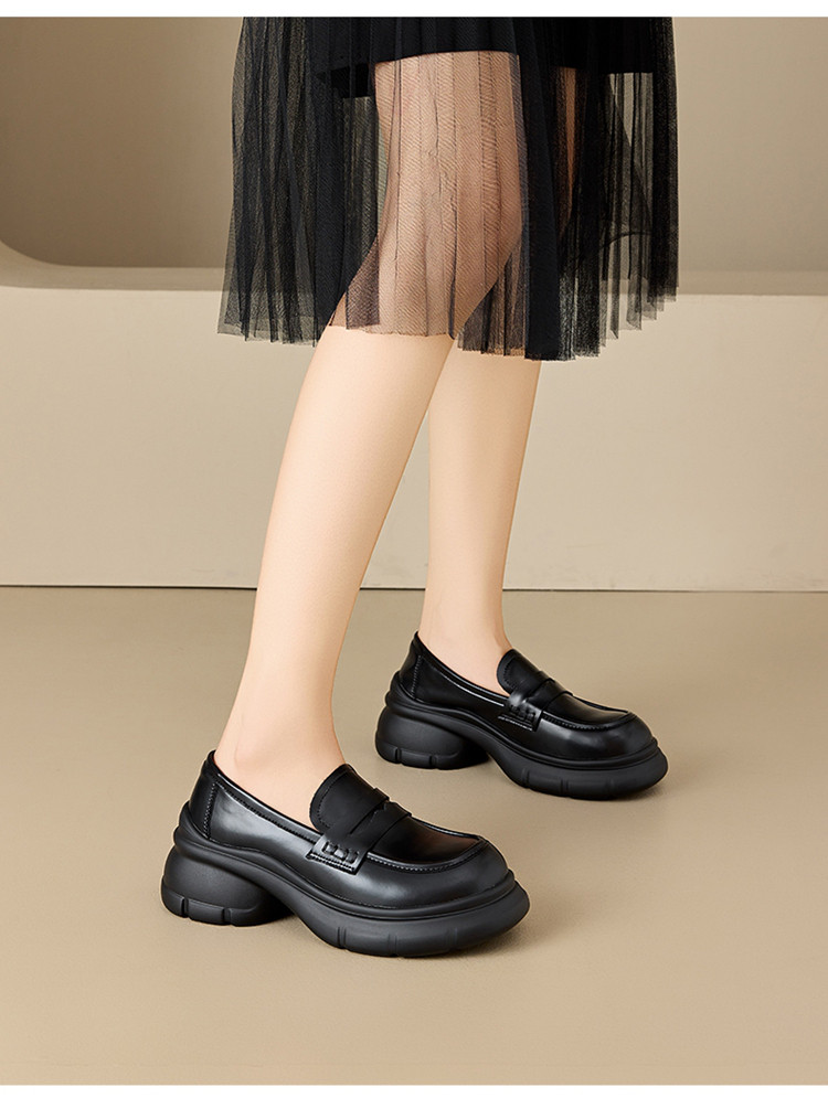 商品名称:乐福鞋女春夏时尚浅口单鞋厚底鞋一脚蹬英伦风粗跟通勤鞋JK鞋 281687