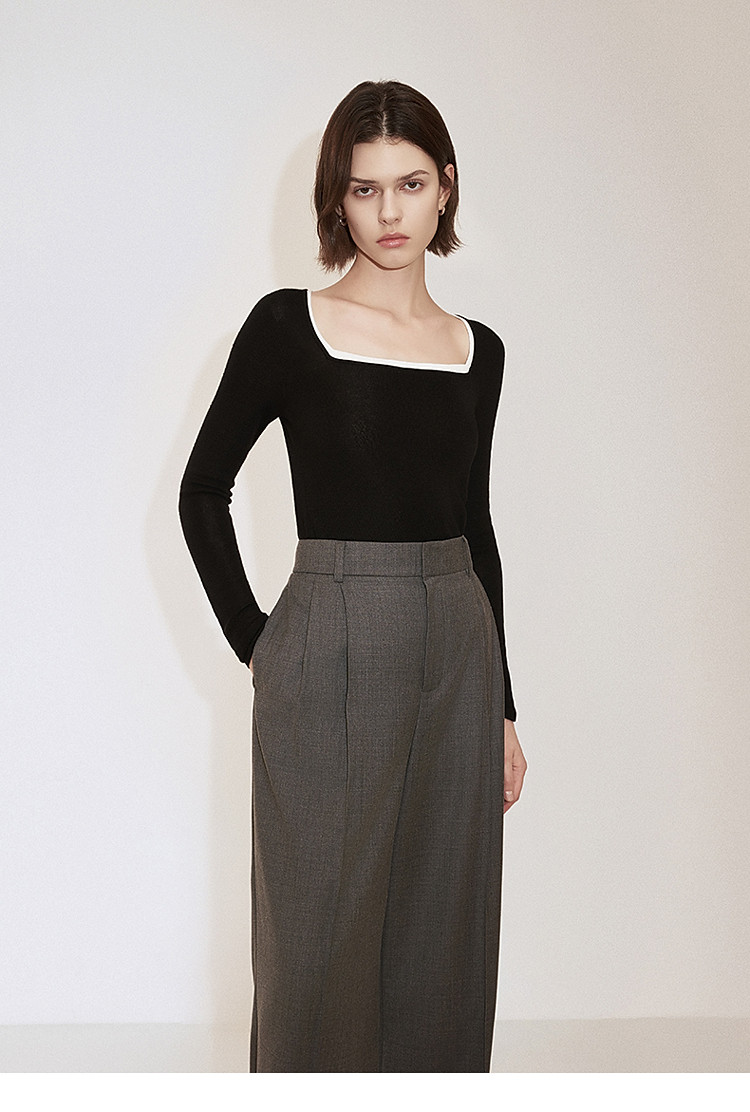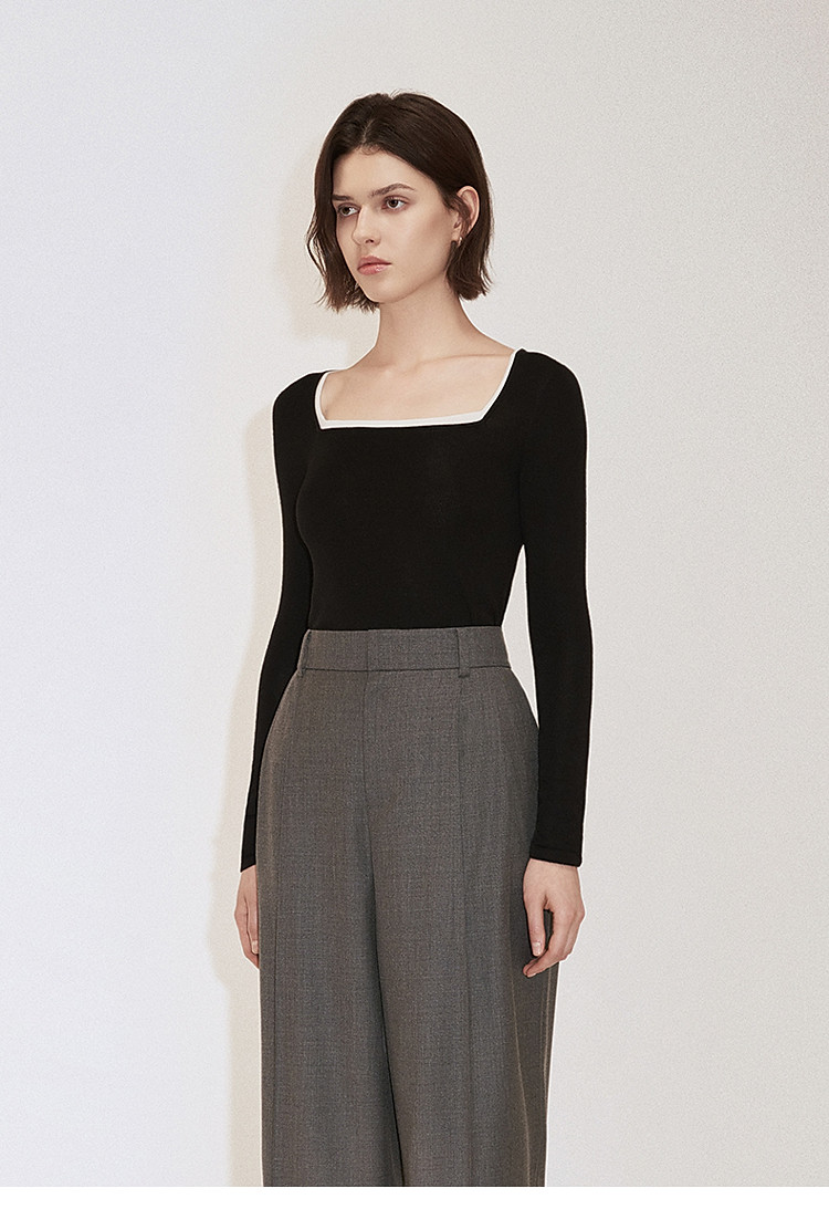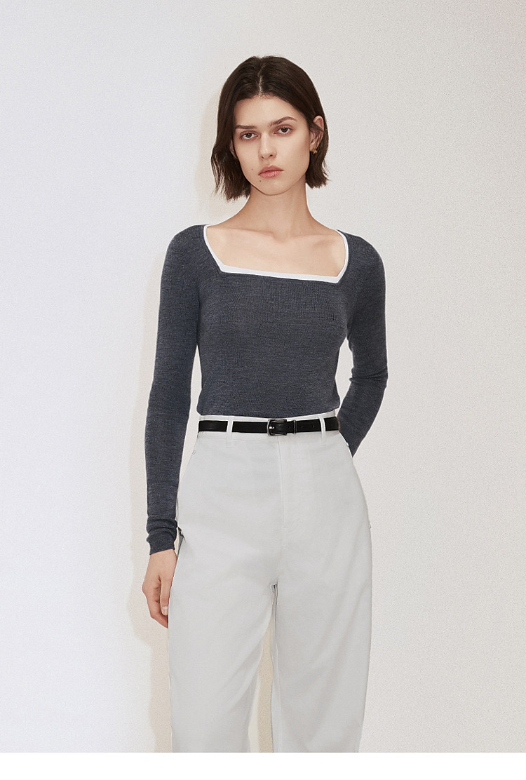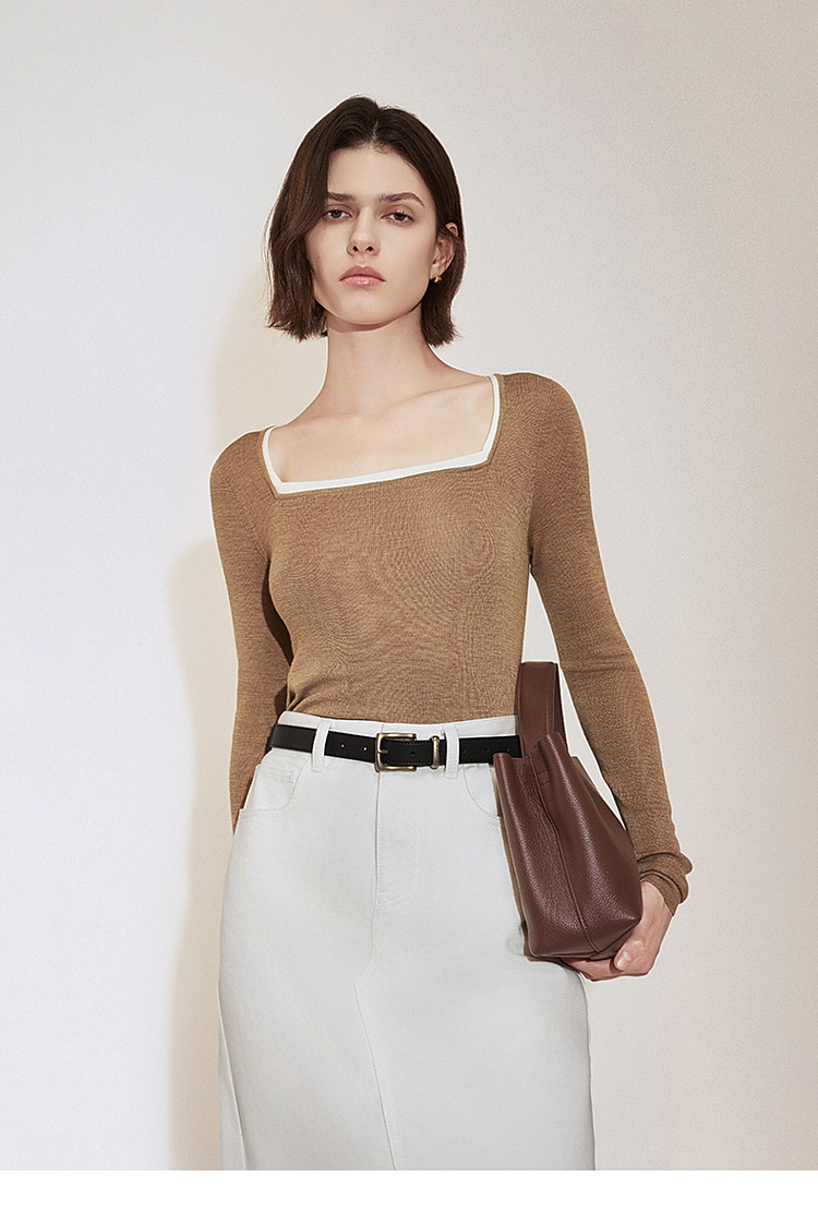 春装 方领针织气质桑蚕丝羊毛套头毛衣女 644815