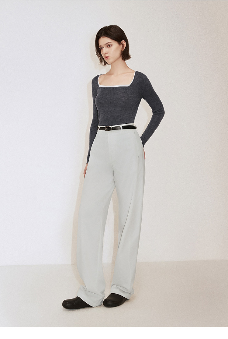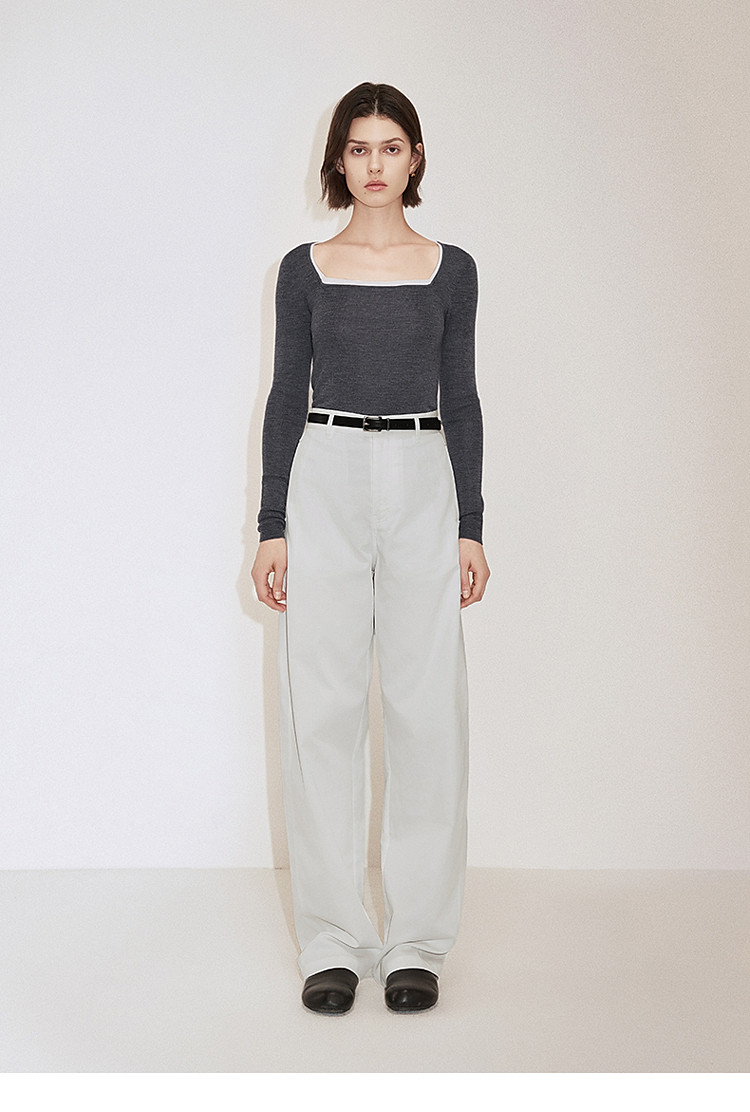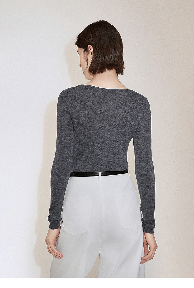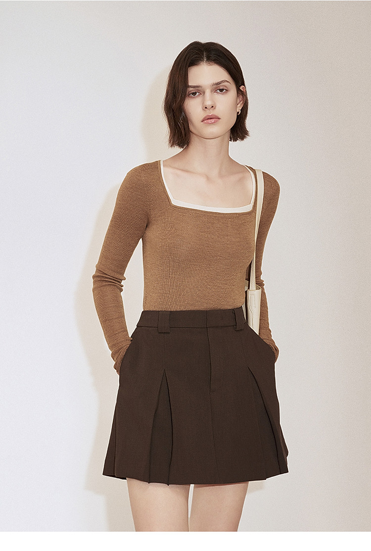 春装 方领针织气质桑蚕丝羊毛套头毛衣女 644815