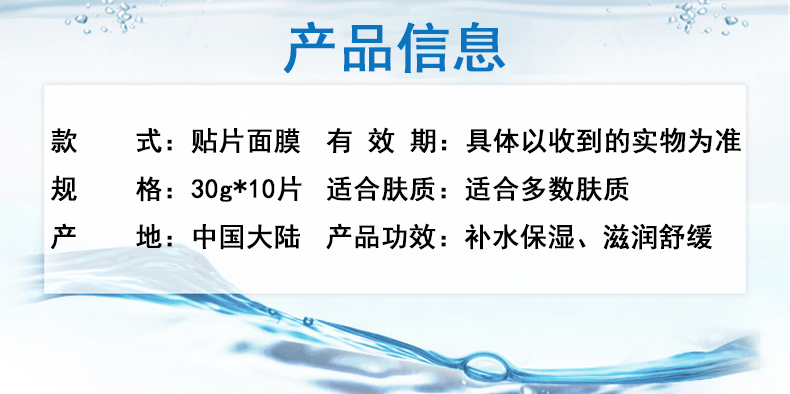 商品名称:露兰姬娜 八杯水倍润深养面膜 30g*10片/盒