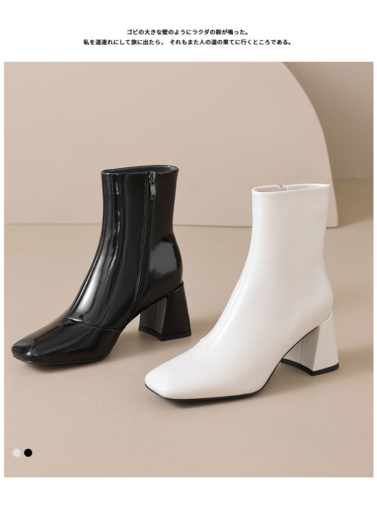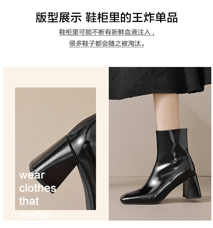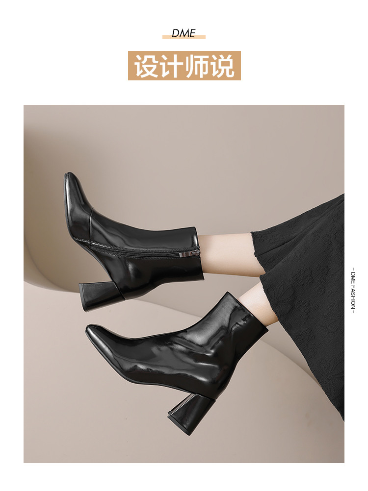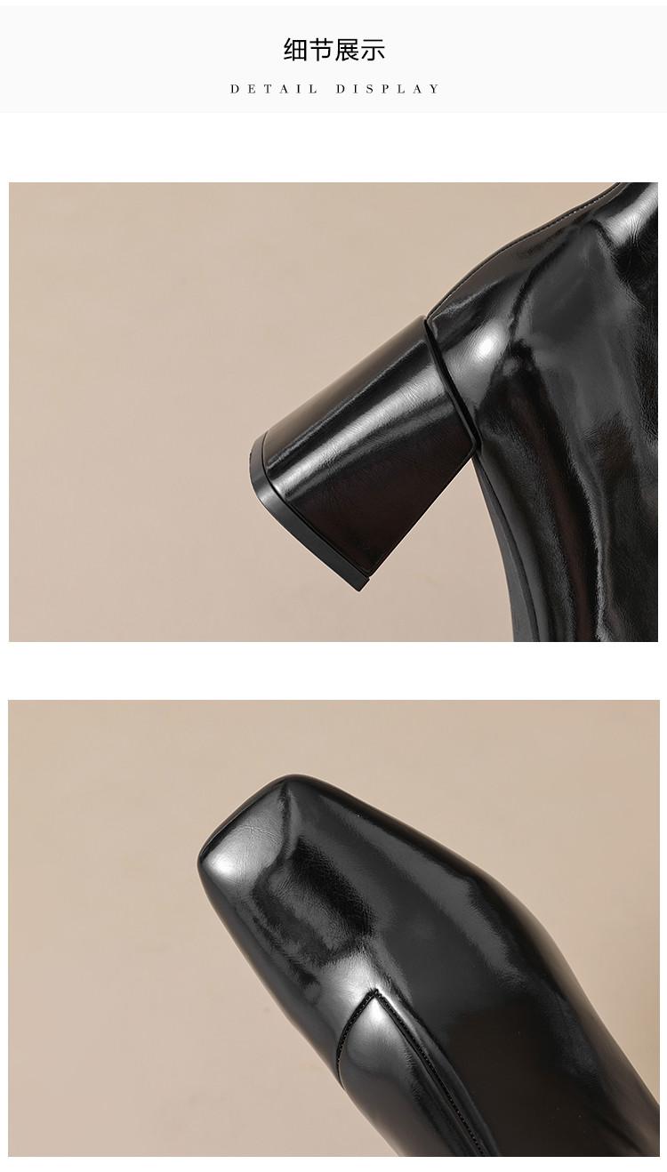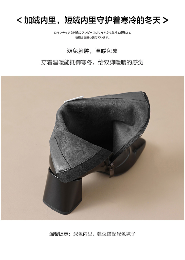 商品名称:冬季时尚简约气质高级感韩系纯色斜切方头高跟时装靴女靴 394753