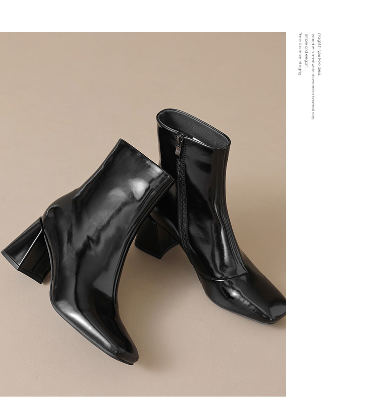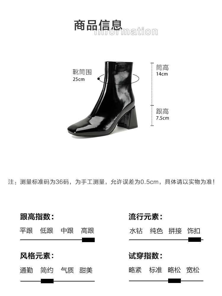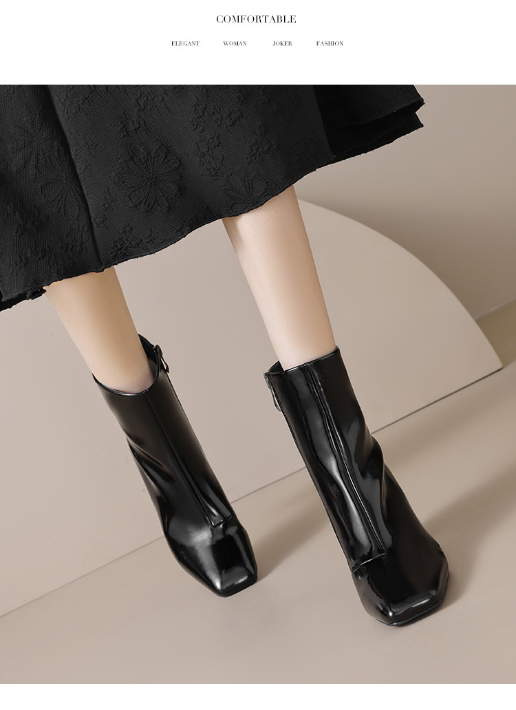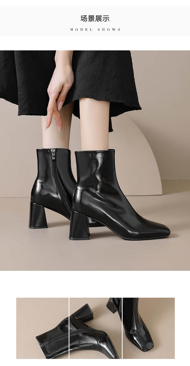 商品名称:冬季时尚简约气质高级感韩系纯色斜切方头高跟时装靴女靴 394753