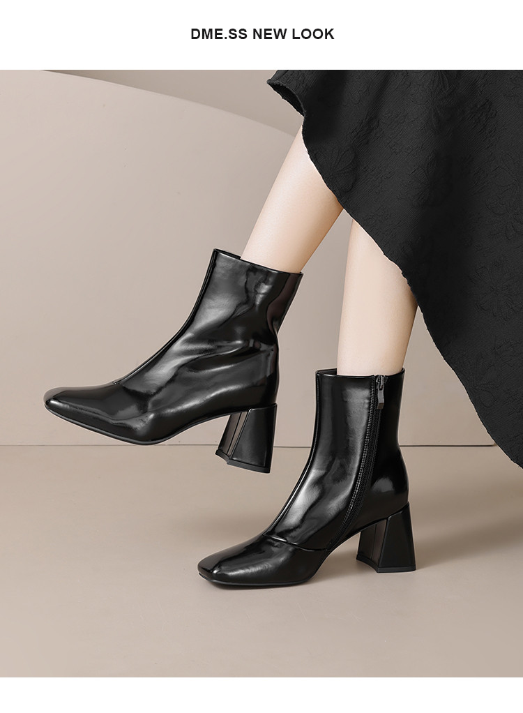 冬季时尚简约气质高级感韩系纯色斜切方头高跟时装靴女靴 394753