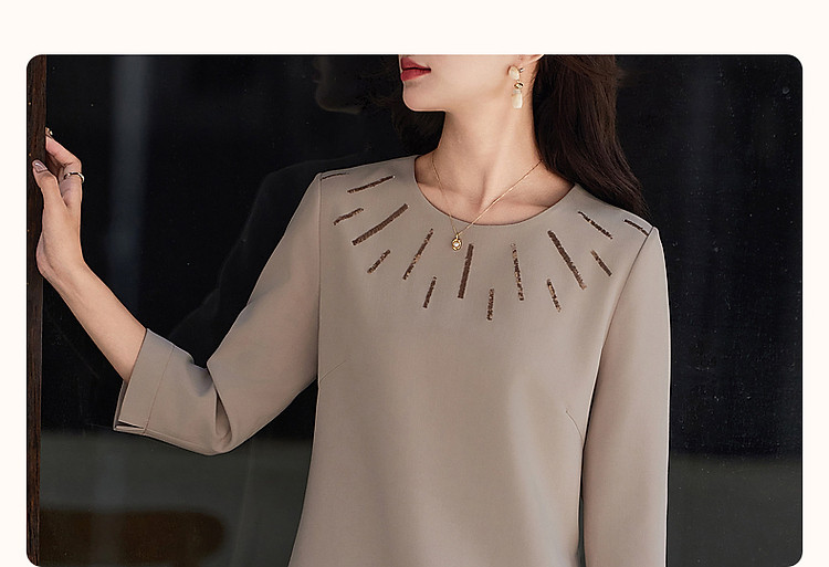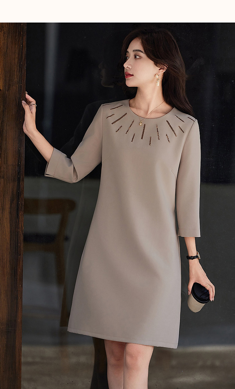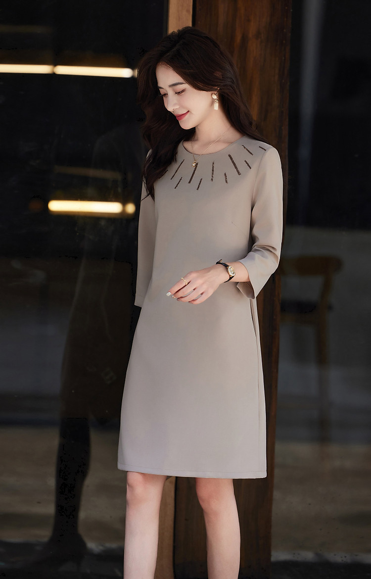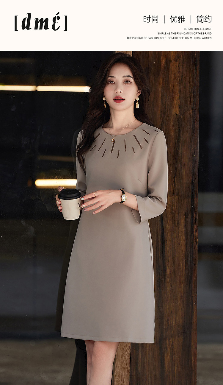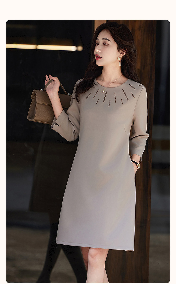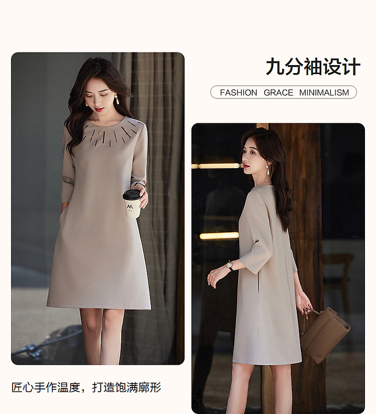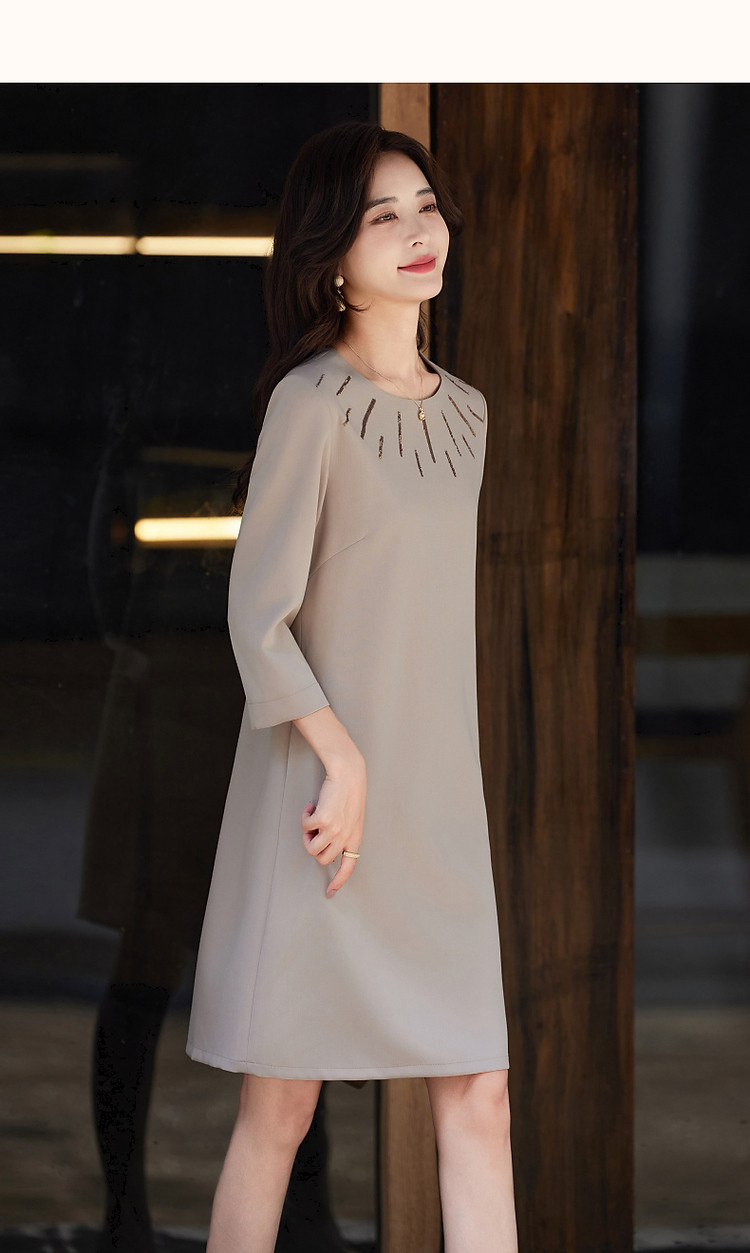商品名称:【松弛一下】春秋季静奢老钱精致亮片九分袖宽松遮肉中长连衣裙女 801345