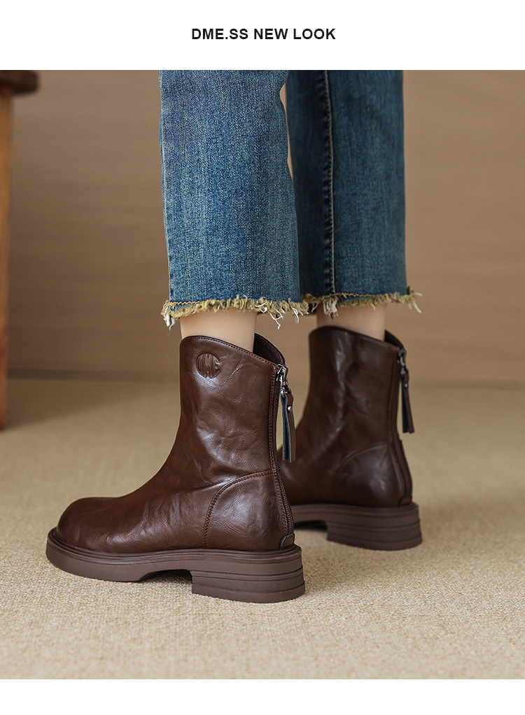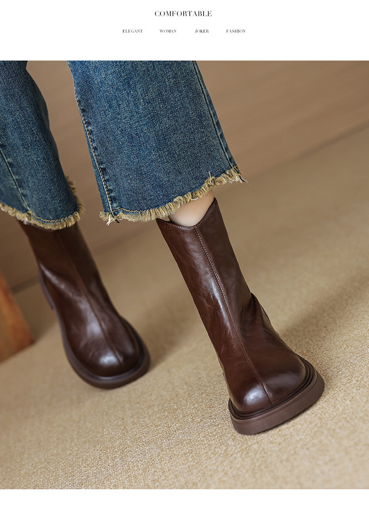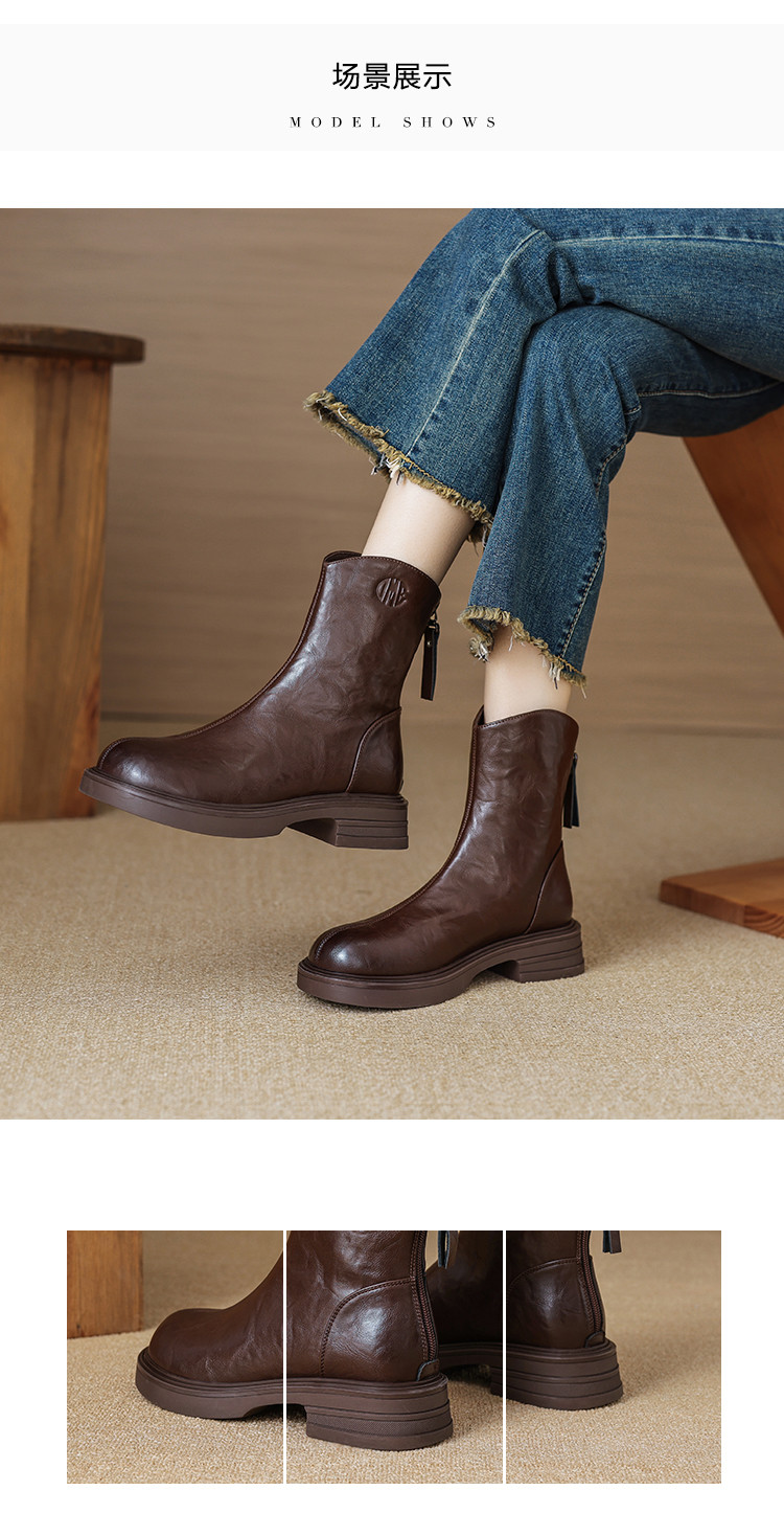 商品名称:秋冬时尚简约纯色圆头舒适百搭日常通勤修饰腿型休闲女靴 157377