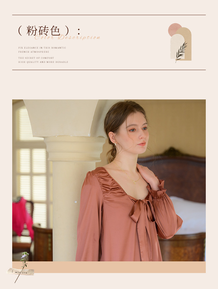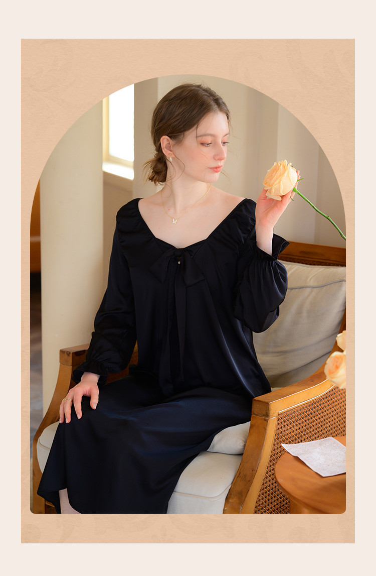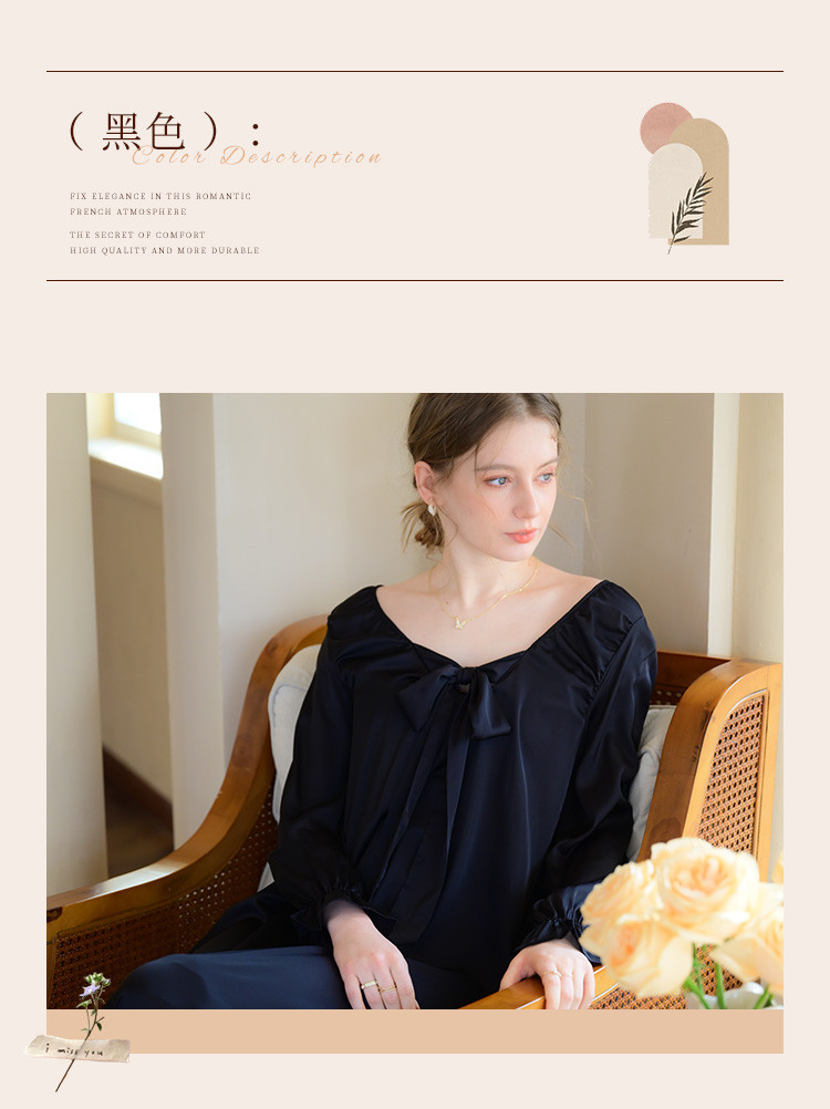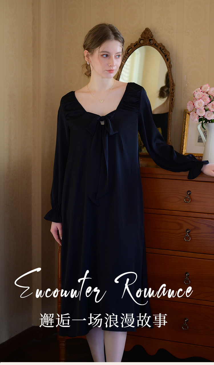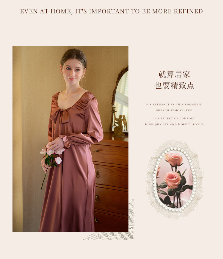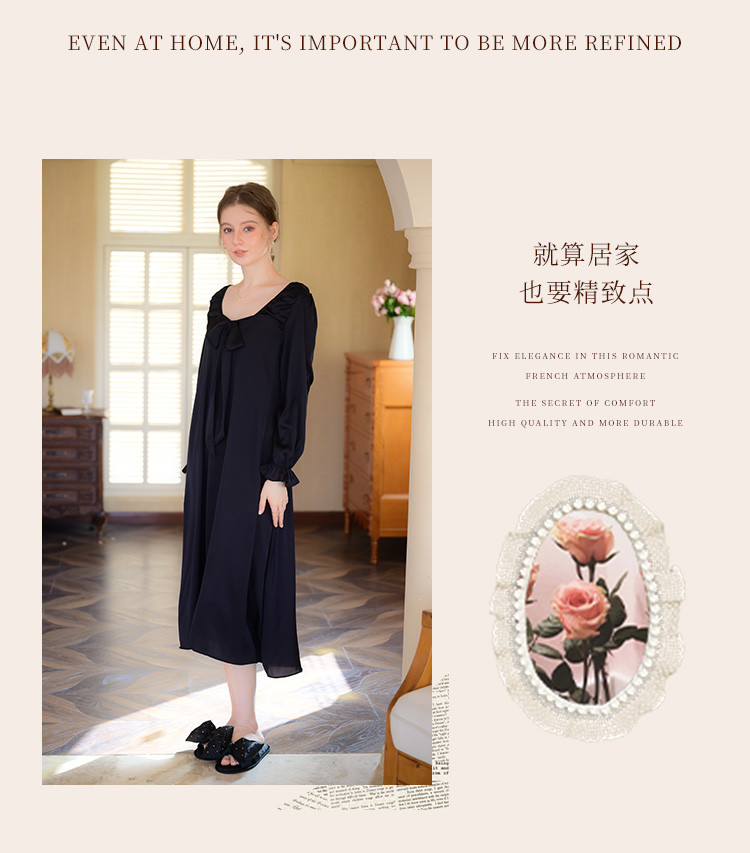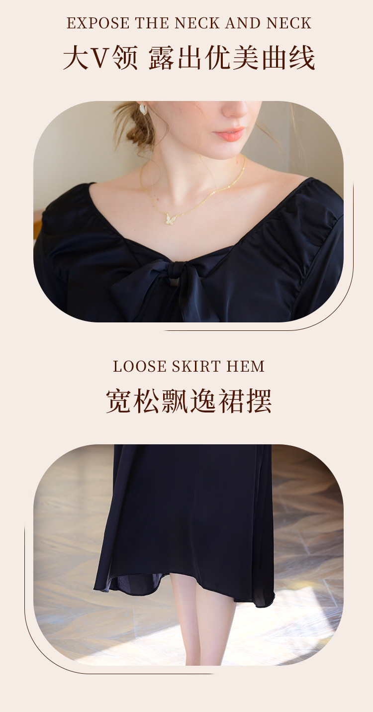 商品名称:【法式浪漫】优雅性感低领女士睡裙春秋款可外穿高级感家居服睡衣 334667