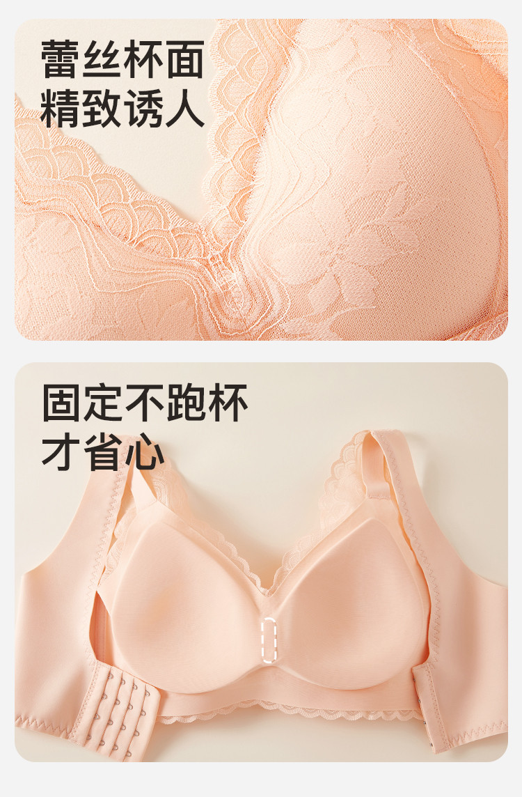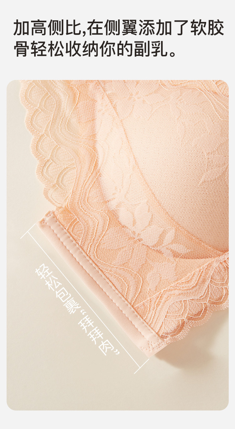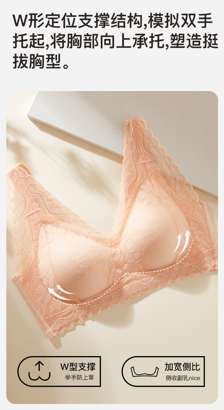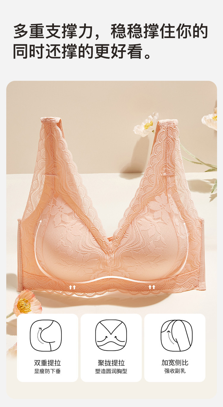 商品名称:【聚拢减压】无钢圈内衣深V防下垂收副乳蕾丝花瓣提拉聚拢文胸罩 082507