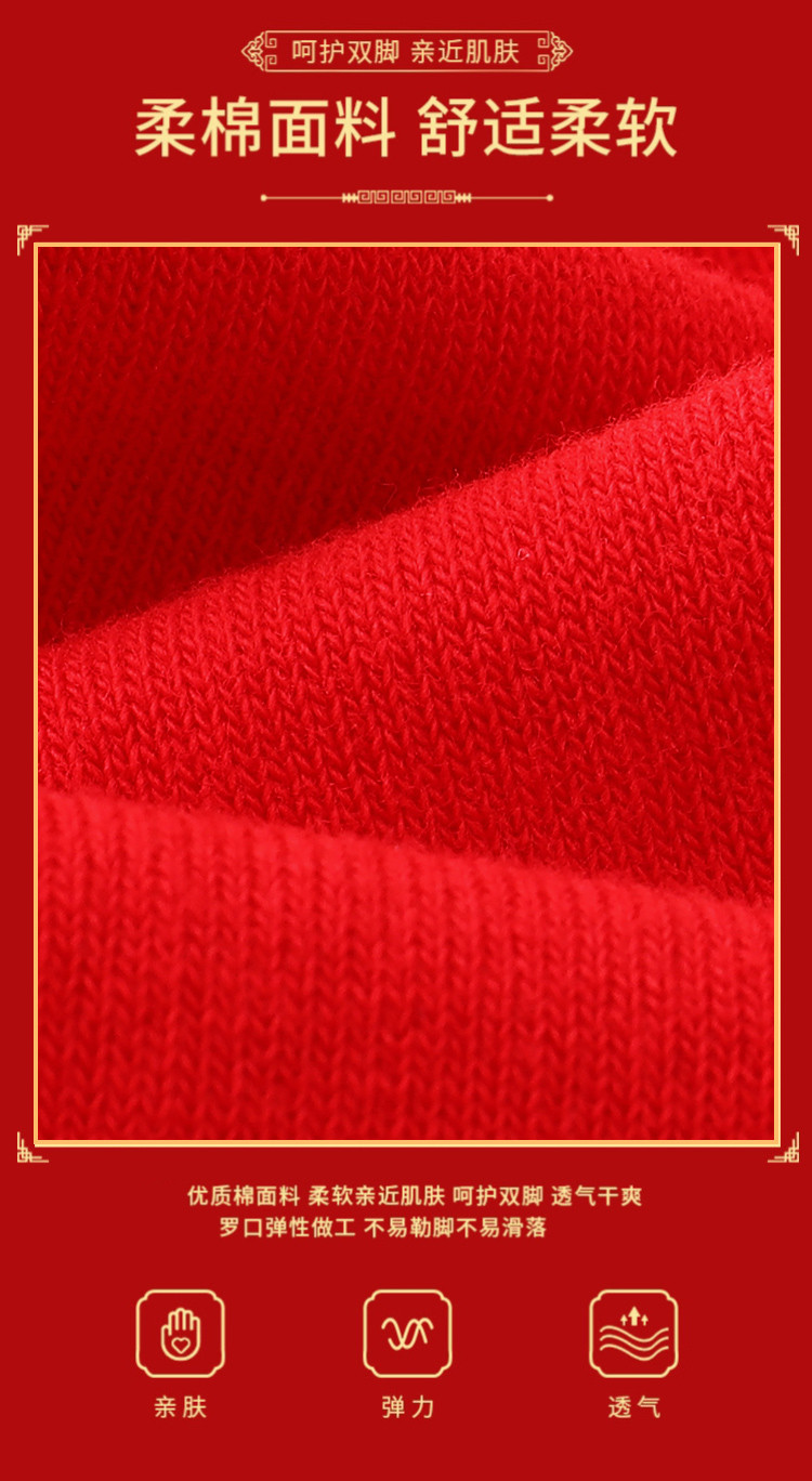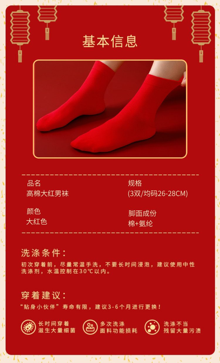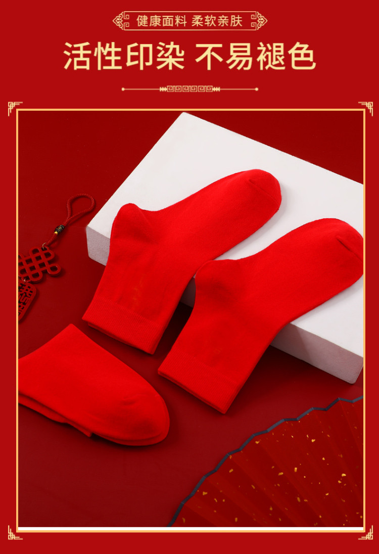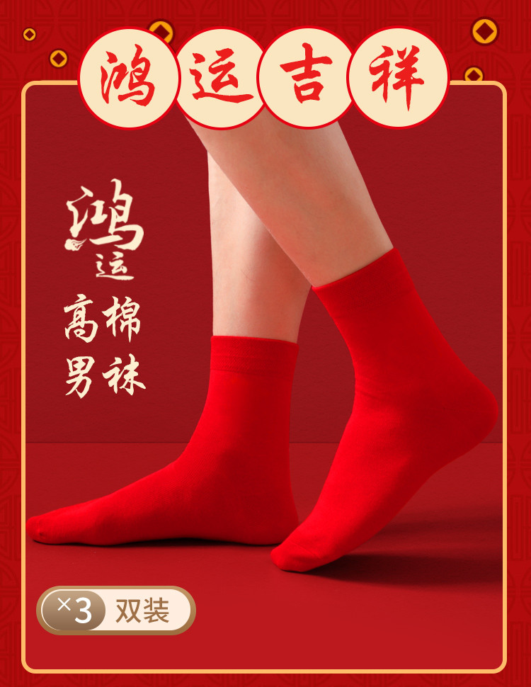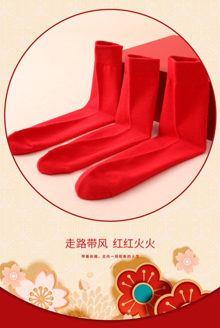 商品名称:3双装高弹吉祥婚庆棉质透气大红色中筒保暖男袜子男 663902