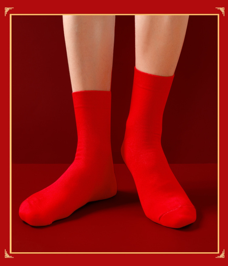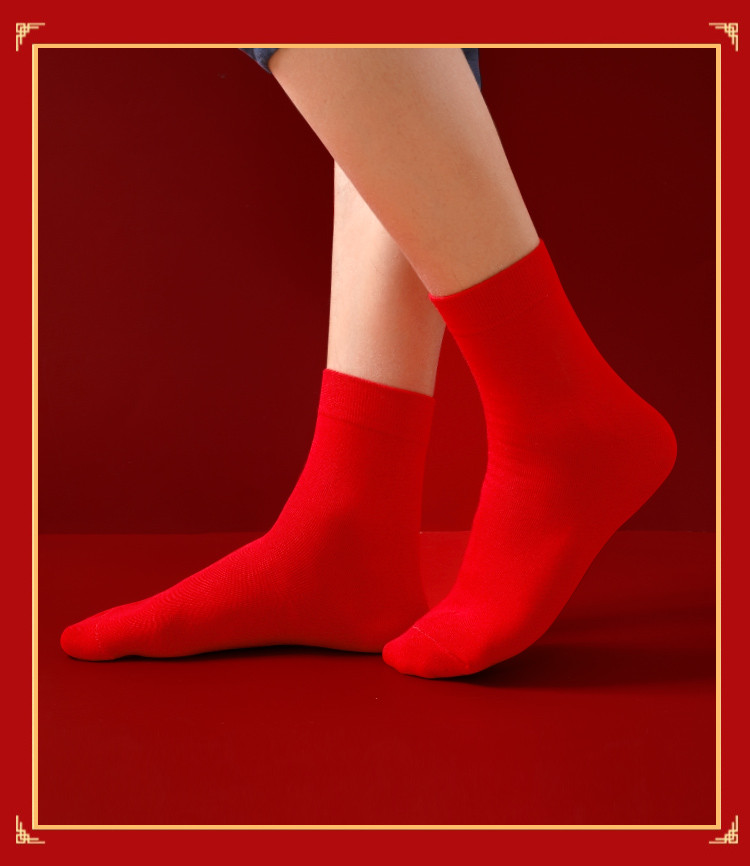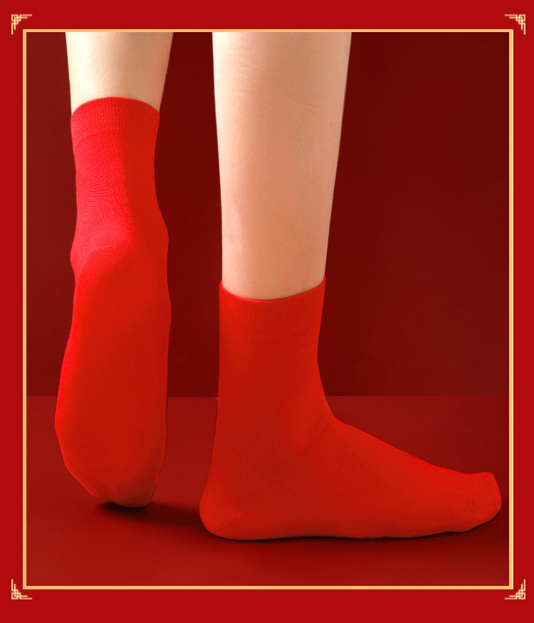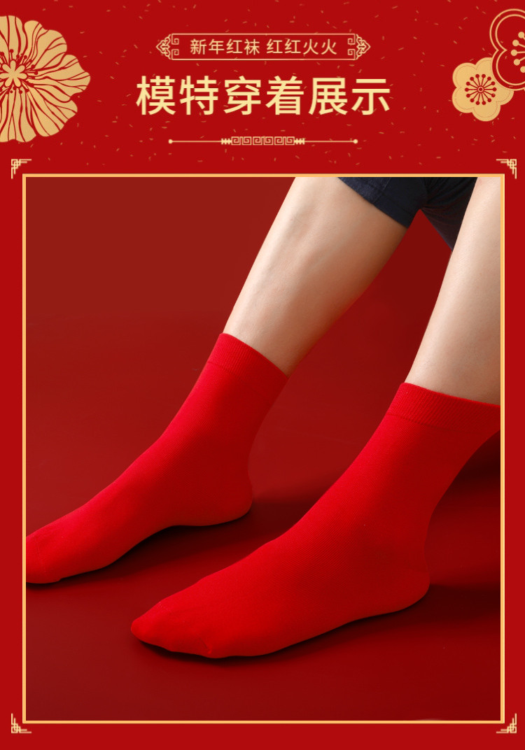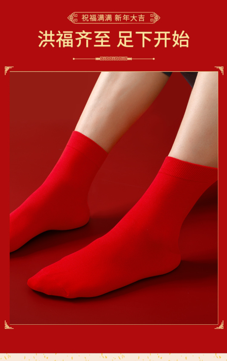 商品名称:3双装高弹吉祥婚庆棉质透气大红色中筒保暖男袜子男 663902