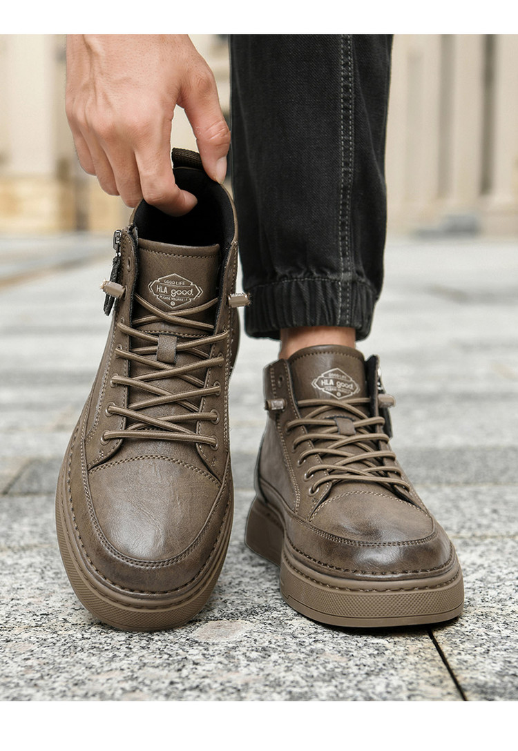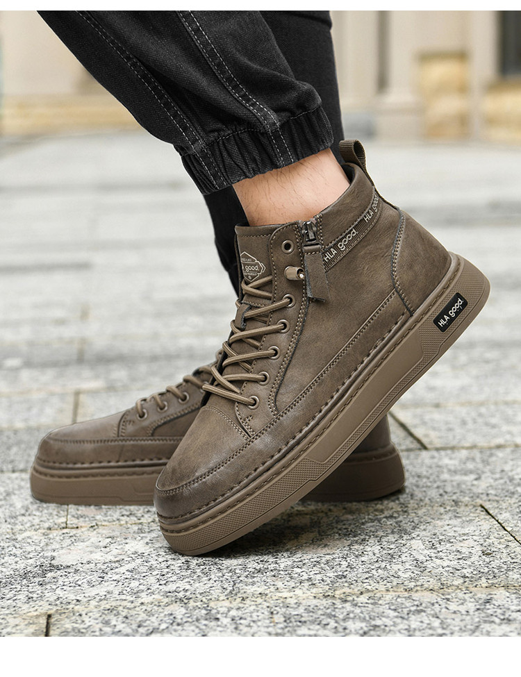 商品名称:男鞋板鞋厚底中帮复古简约英伦风百搭男士工装鞋男休闲鞋 227087