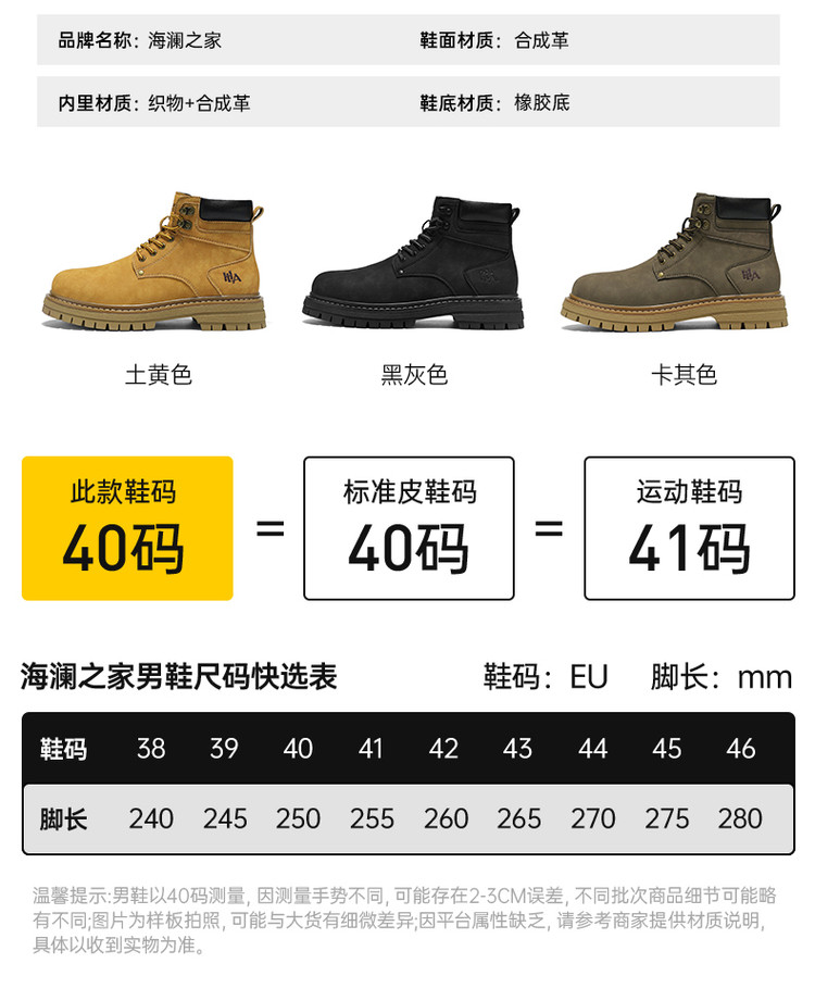 商品名称:靴子马丁靴男款经典简约复古潮流工装鞋男厚底舒适男士马丁靴男靴 517903