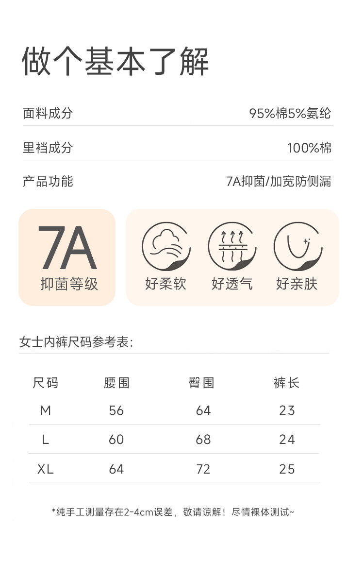 商品名称:【7A级抑菌 100%纯棉内裆】舒适透气短裤衩高级女士内裤女 493707