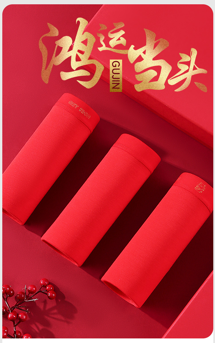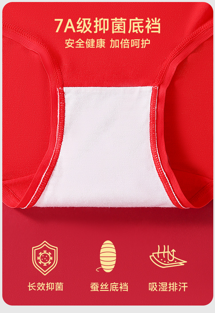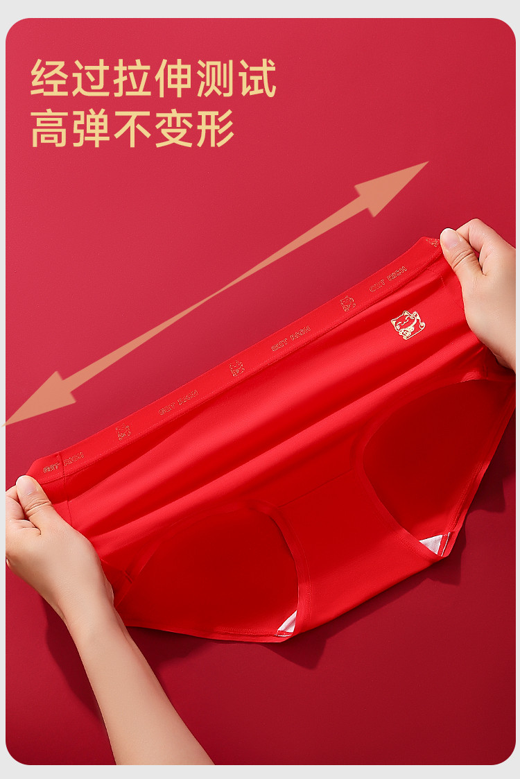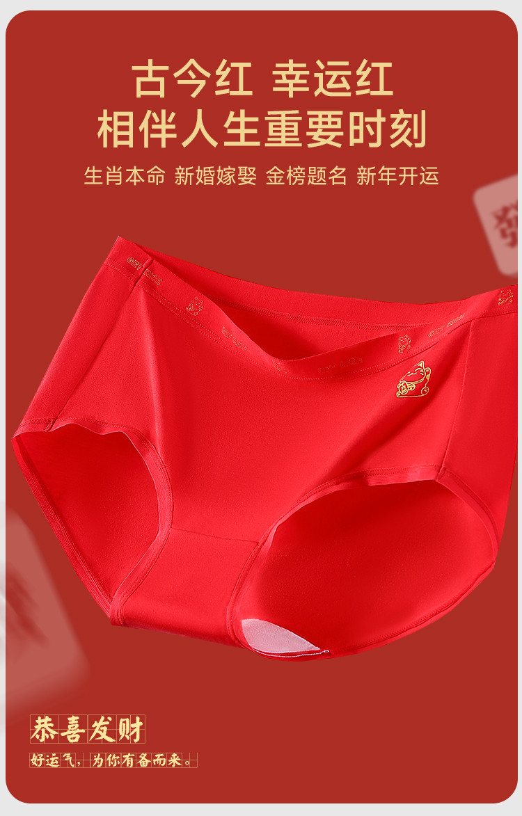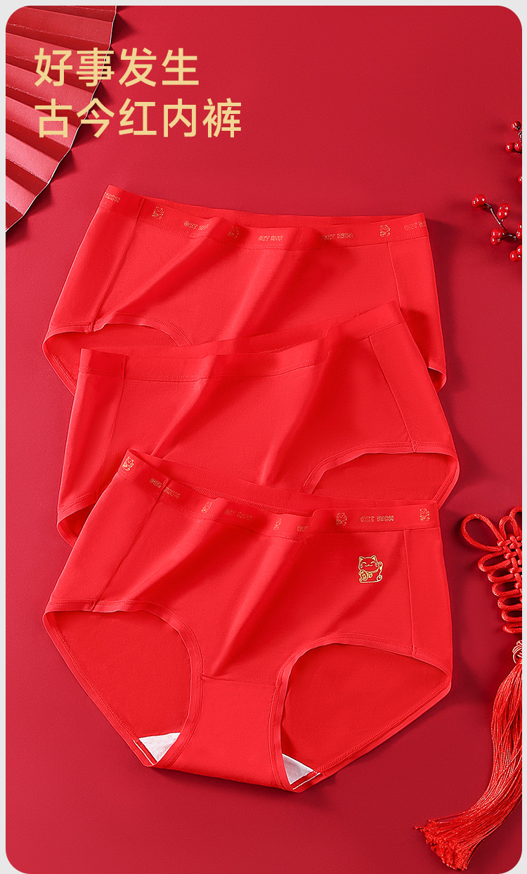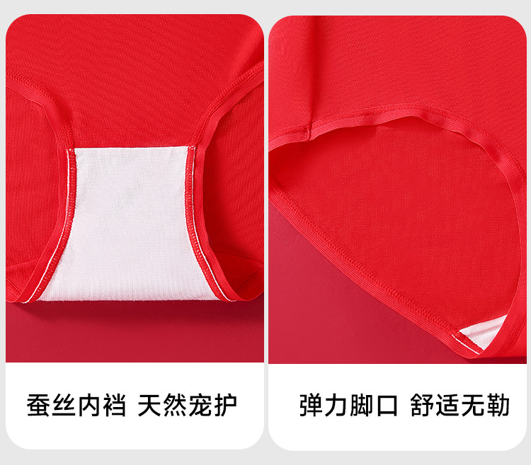 商品名称:【财运鸿运本命红】3条女士内裤女婚嫁红色舒适含柞蚕丝裆莫代尔 939659