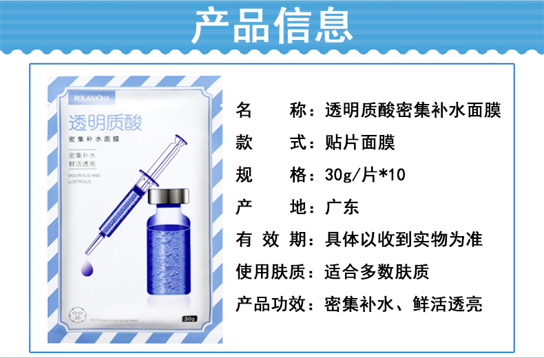 商品名称:露兰姬娜 透明质酸密集补水面膜 30g*10片/盒