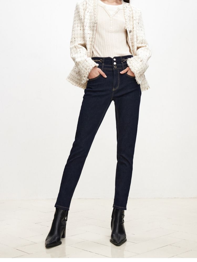 高腰牛仔裤女秋季显瘦裤子女简约休闲通勤长裤女 505622