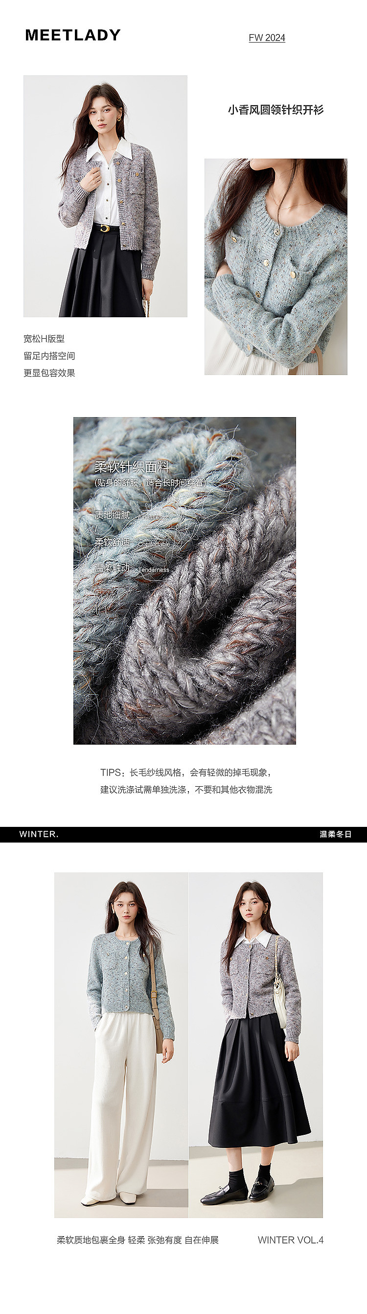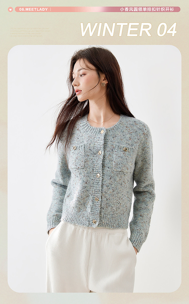 商品名称:【2024冬季】优雅小香风甜美针织开衫外套女毛衣显瘦上衣 741140
