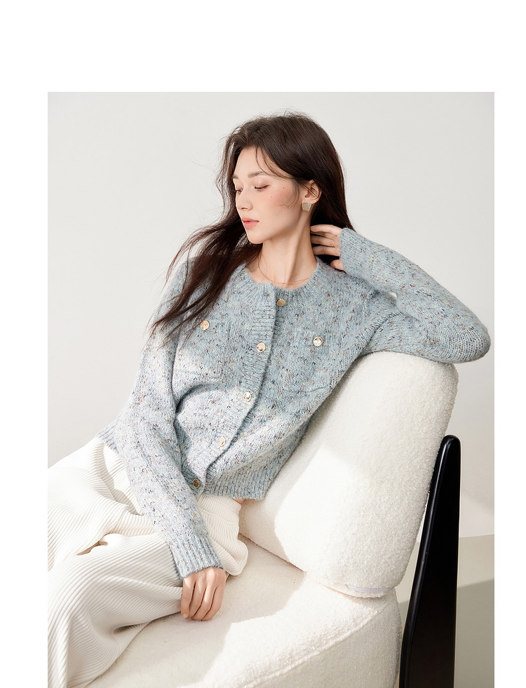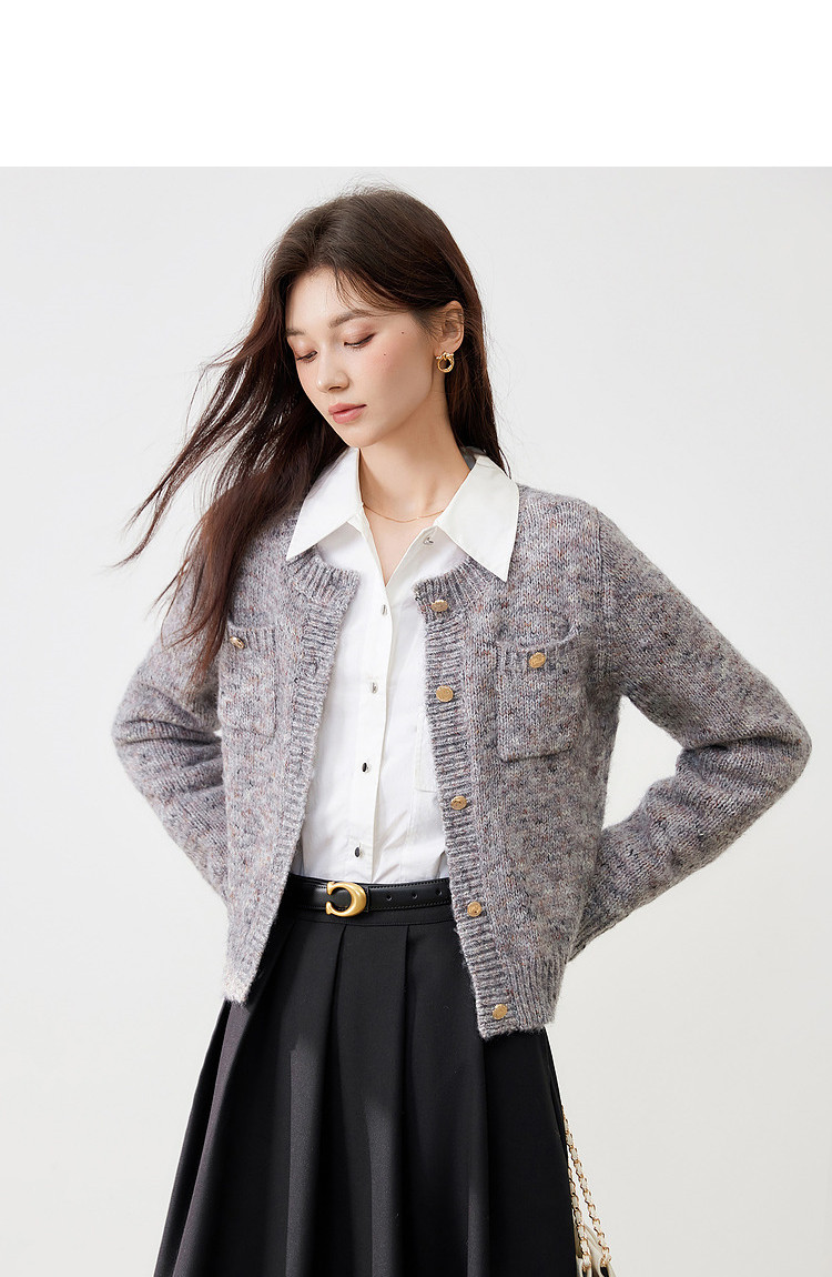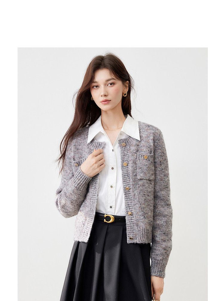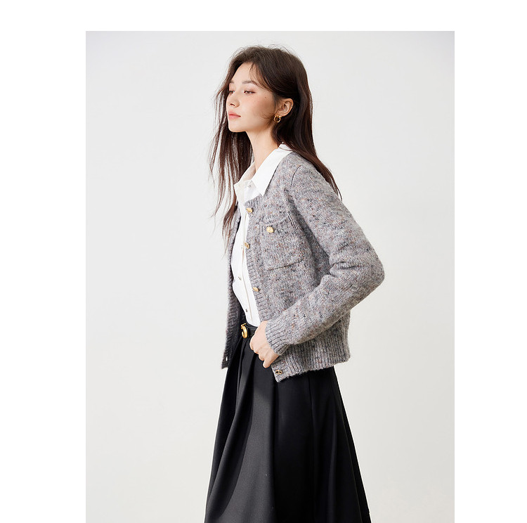 【2024冬季】优雅小香风甜美针织开衫外套女毛衣显瘦上衣 741140