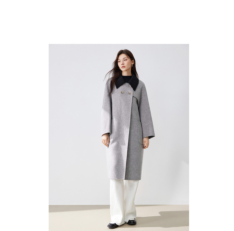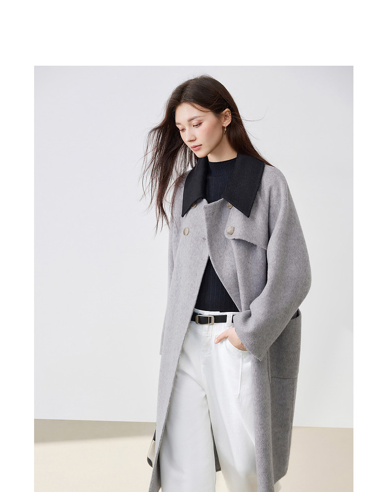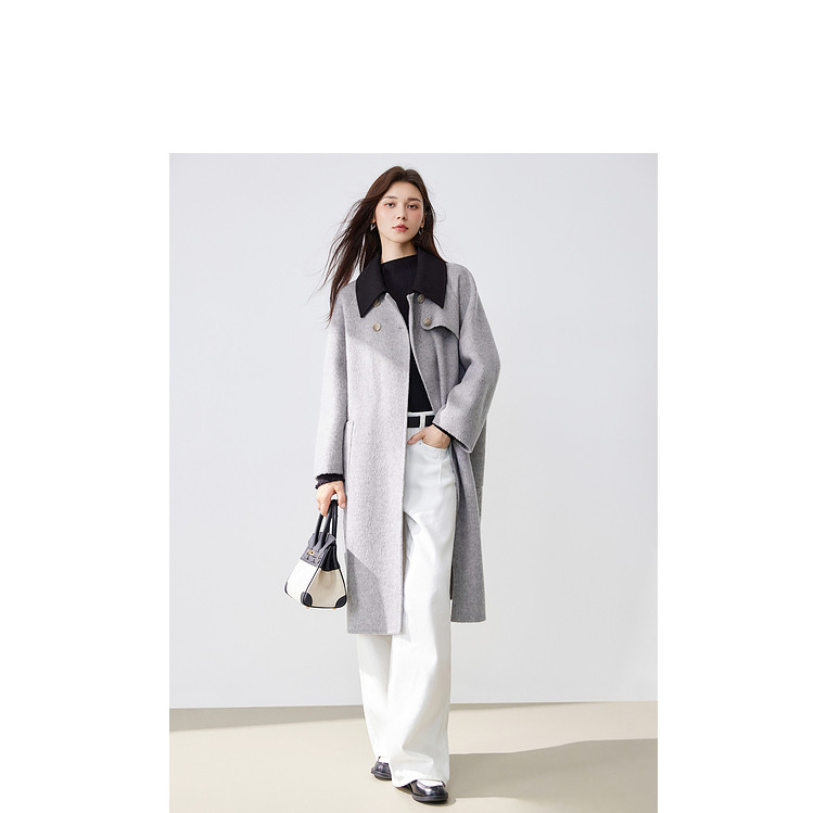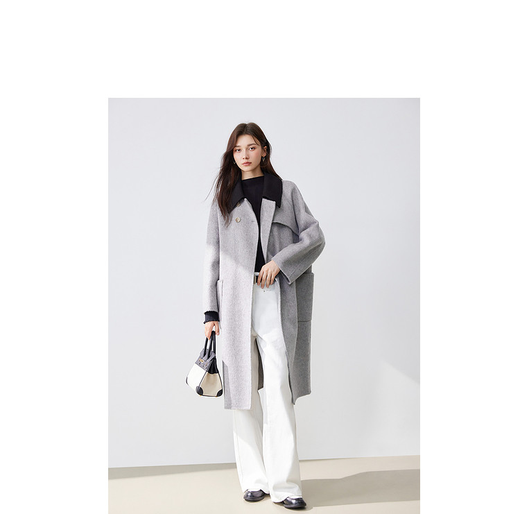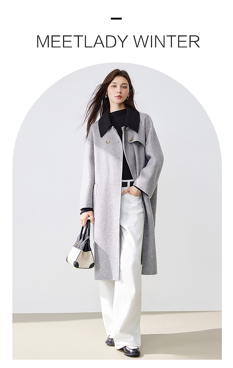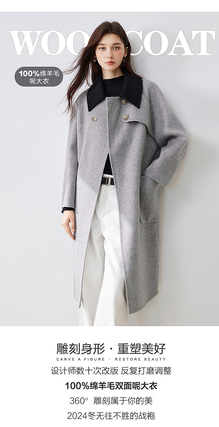 【100%绵羊毛】2024冬季高级感双面呢中长款毛呢外套大衣 745236