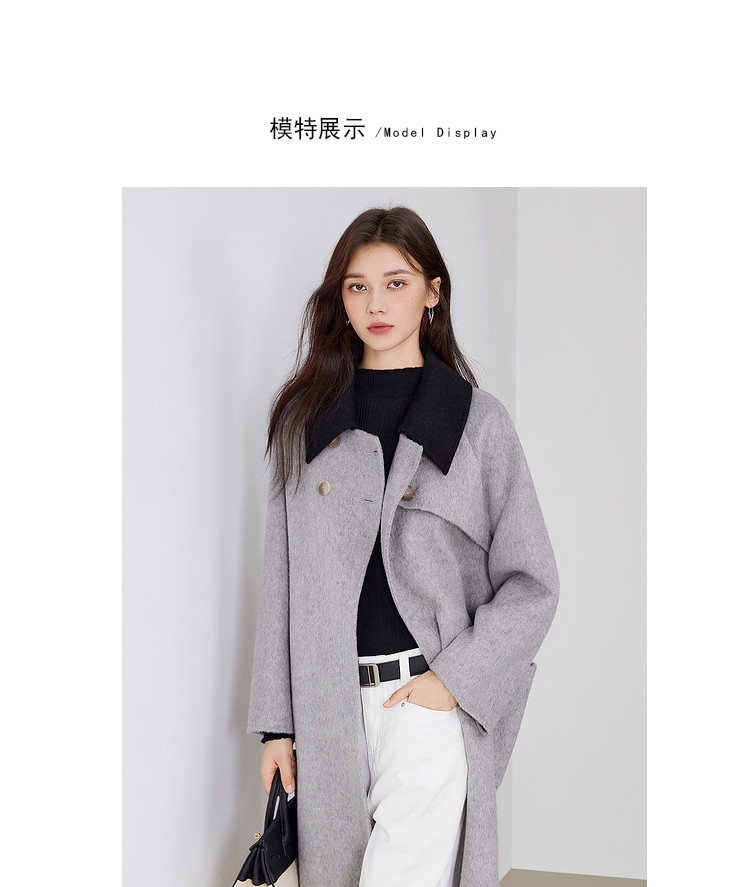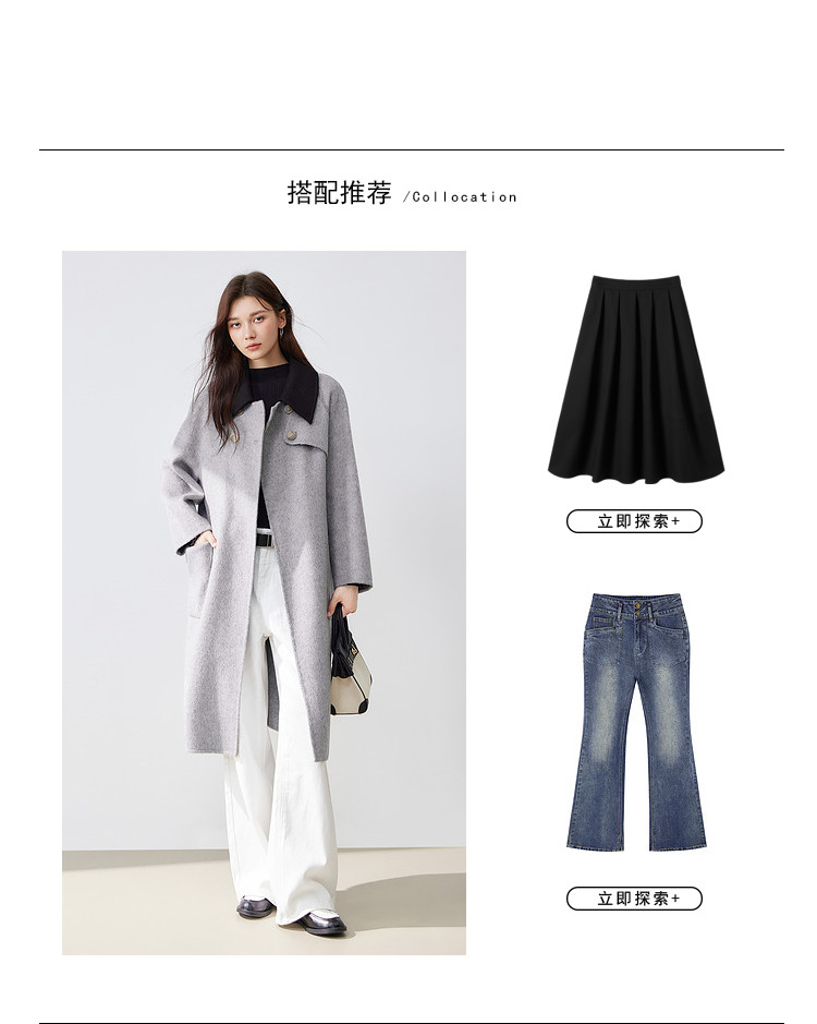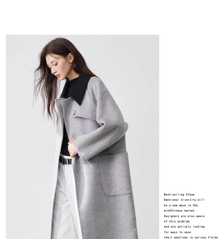 商品名称:【100%绵羊毛】2024冬季高级感双面呢中长款毛呢外套大衣 745236