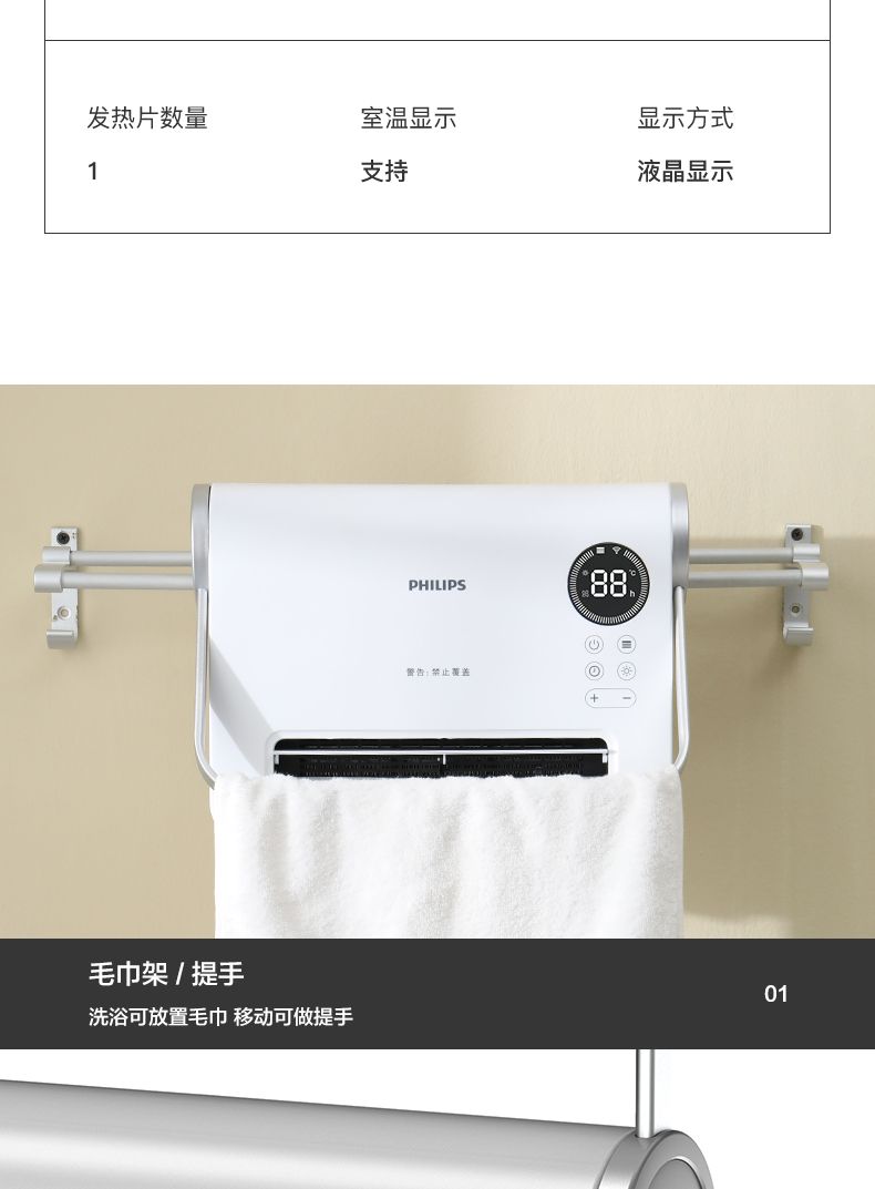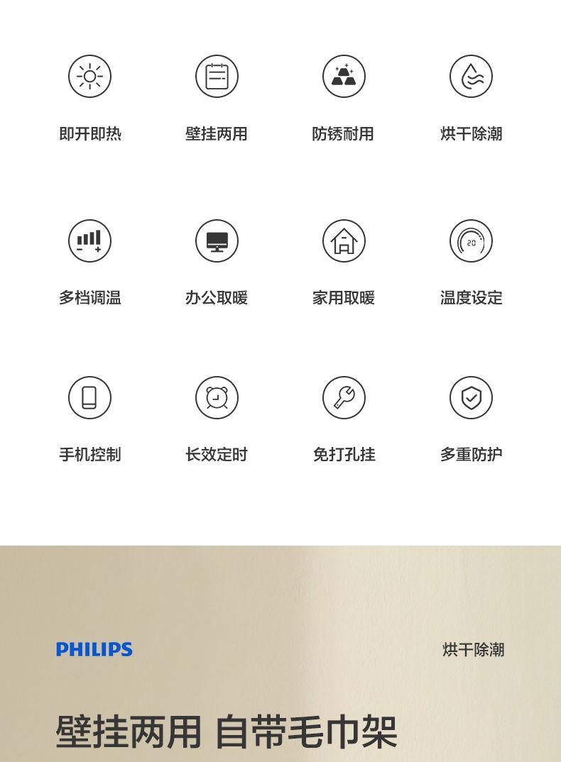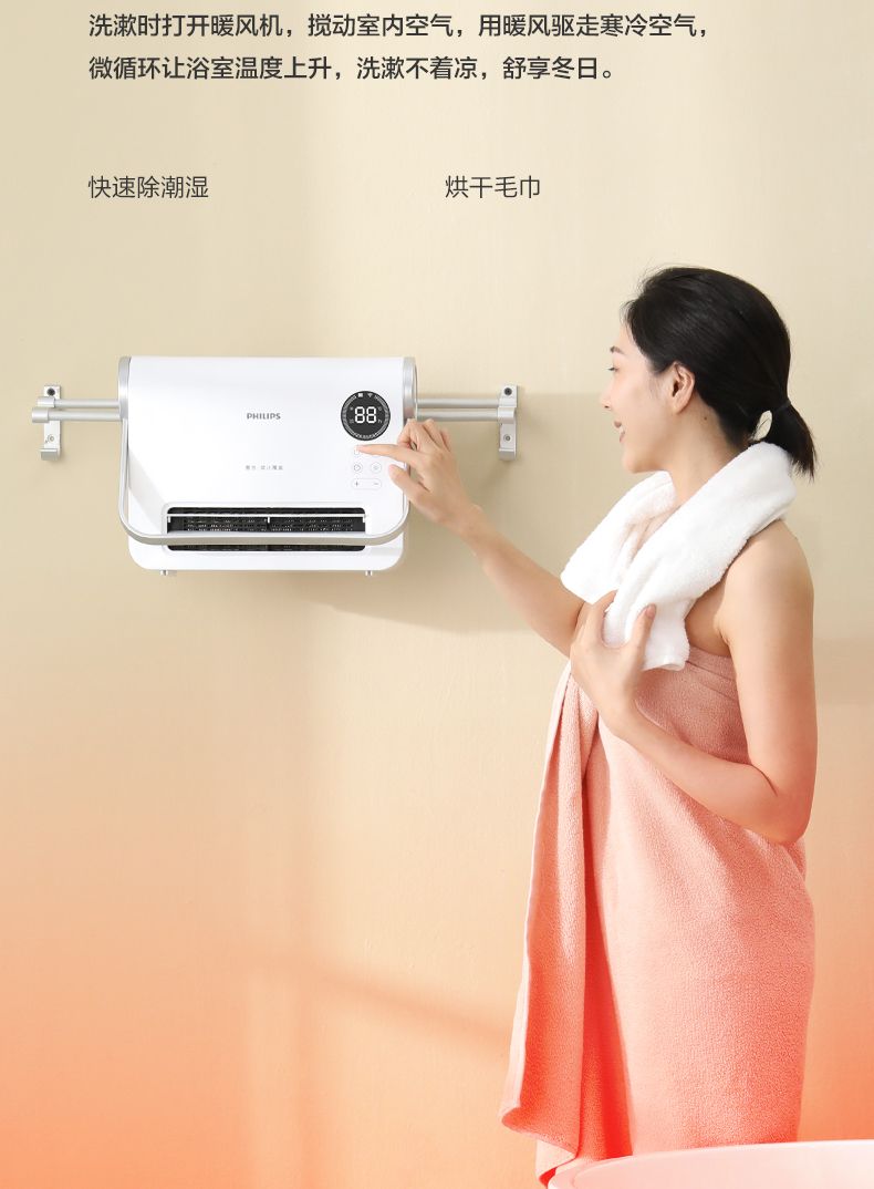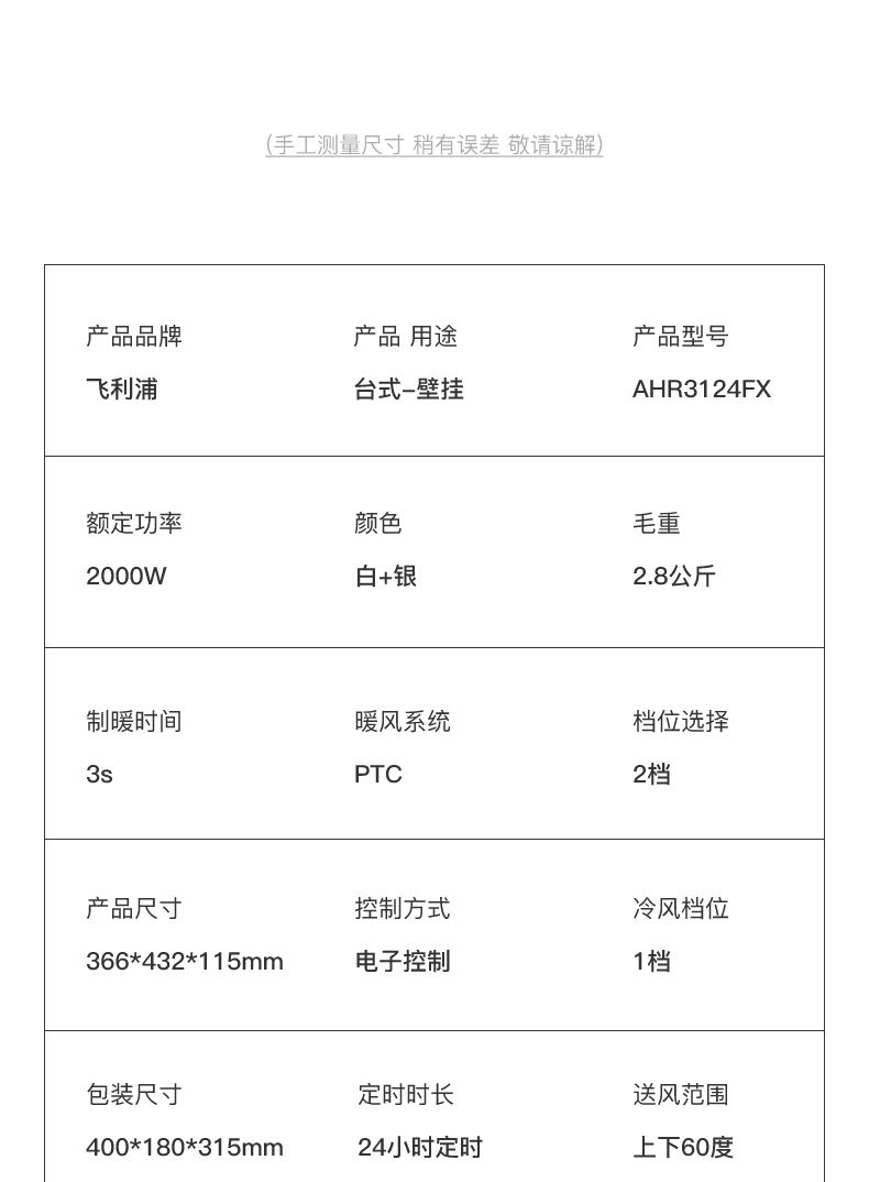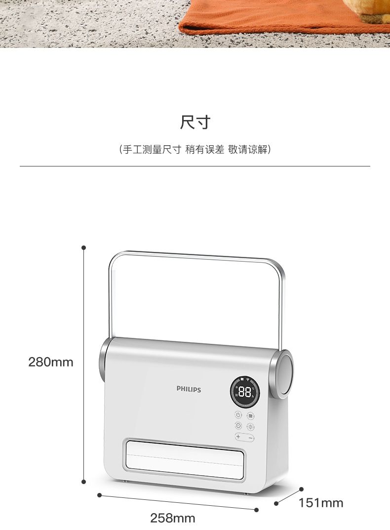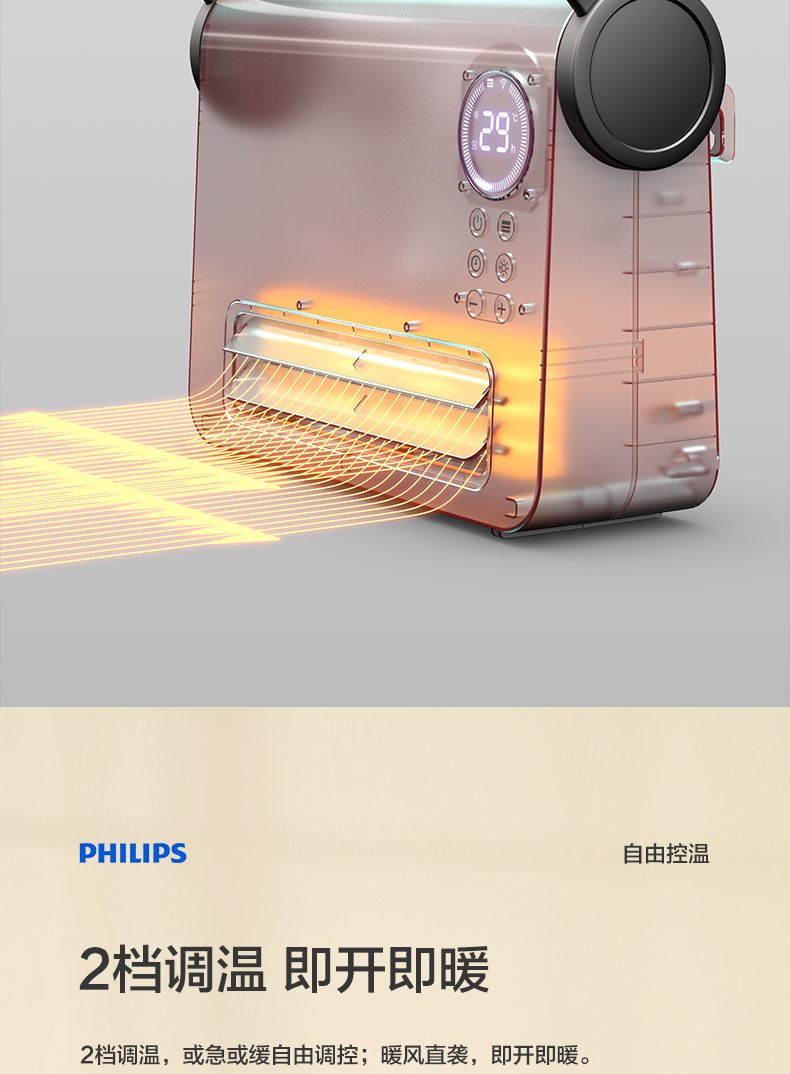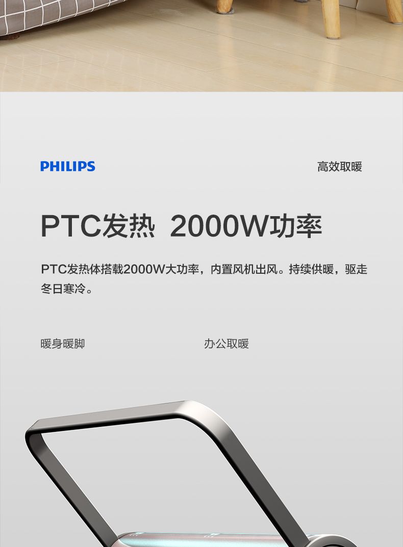 商品名称:飞利浦取暖器AHR3124FX 暖风机家用节能电暖器防水速热小型电暖气2000瓦