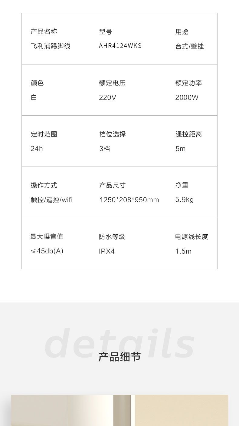 商品名称:飞利浦踢脚线取暖器AHR4124WKS 家用电暖器移动地暖电暖气片浴室卧室对流暖气片(散热口90CM)