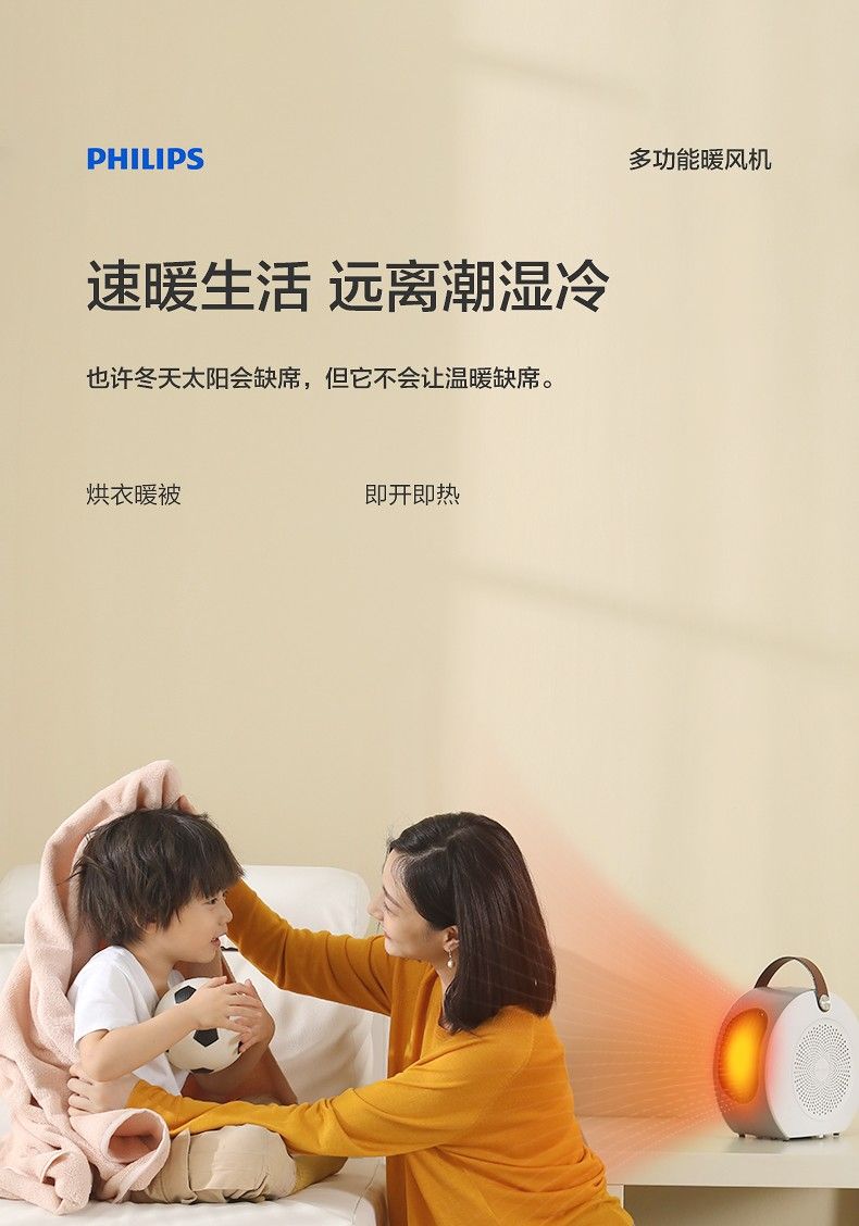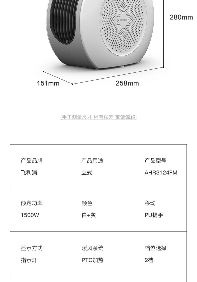 商品名称:飞利浦取暖器AHR3124FM 暖风机家用电暖气速干烘被机小型电暖器1500瓦 书房办公室适用