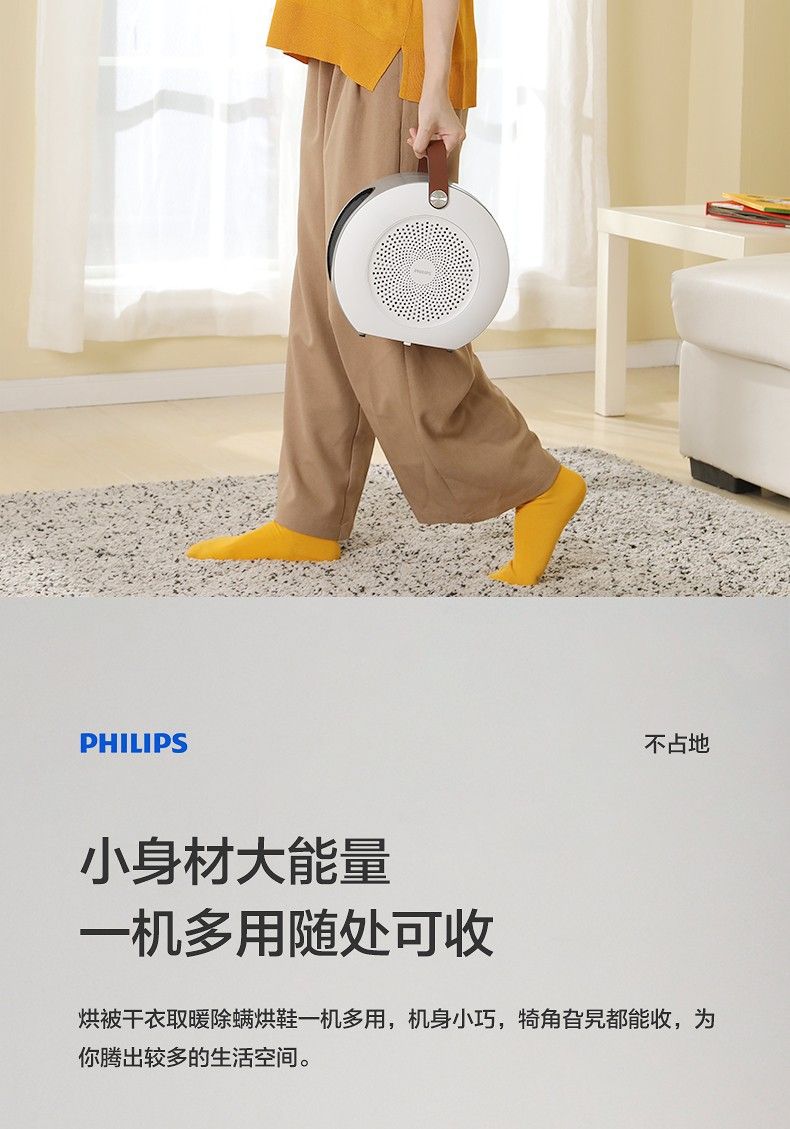 飞利浦取暖器AHR3124FM 暖风机家用电暖气速干烘被机小型电暖器1500瓦 书房办公室适用