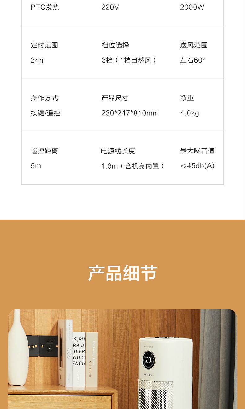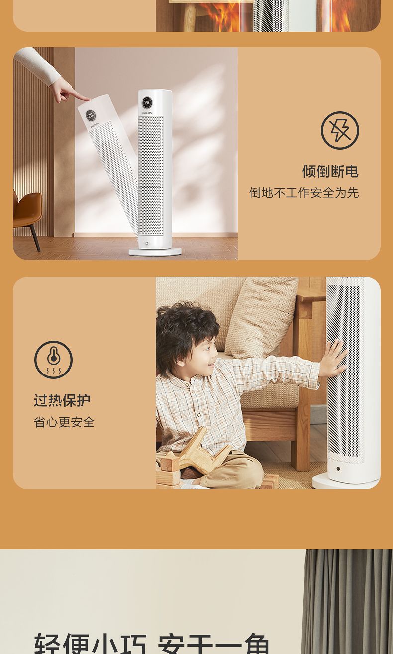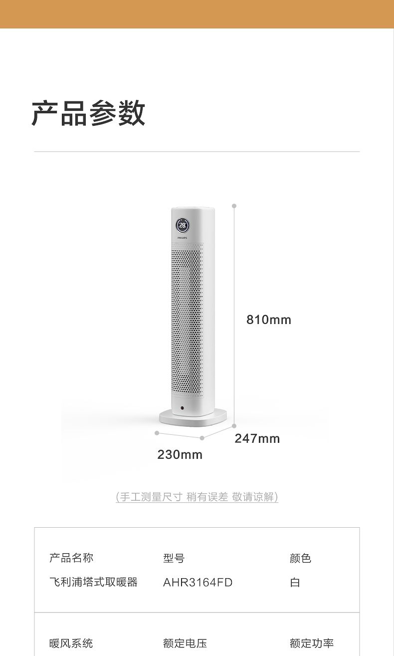 商品名称:飞利浦取暖器AHR3164FD 暖风机家用大面积电暖器塔式速热立式电暖气热风机