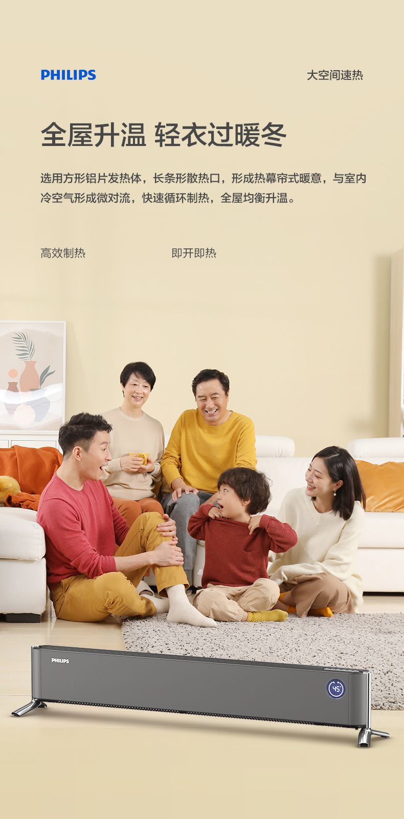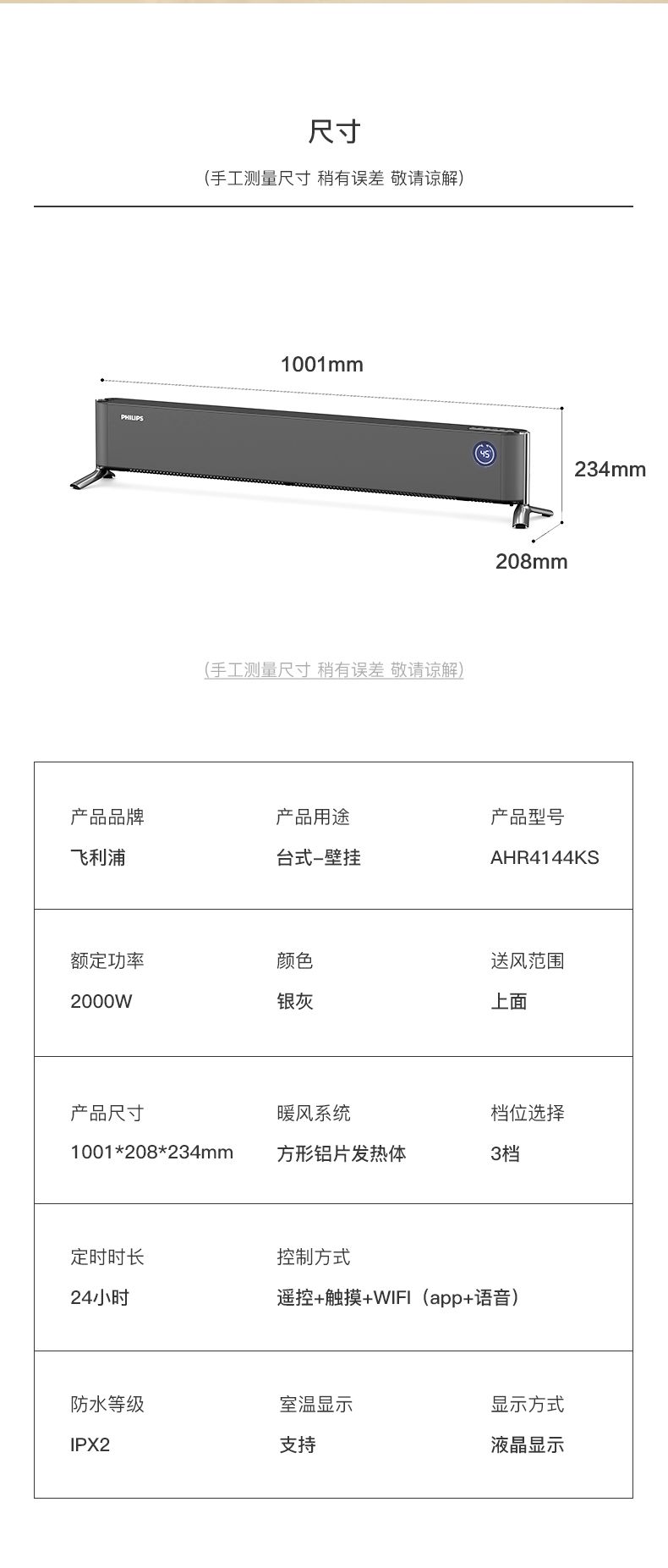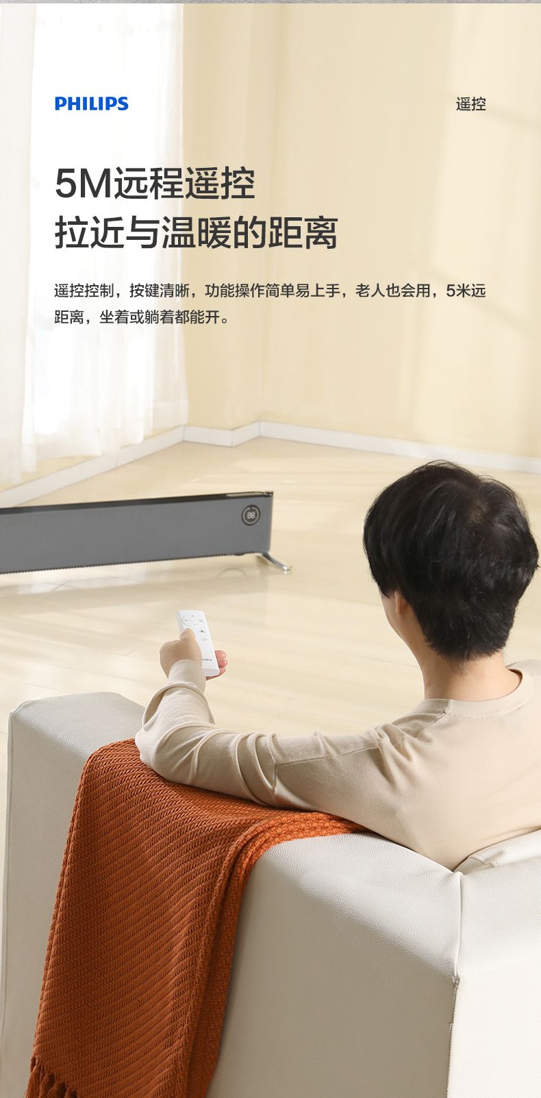 商品名称:飞利浦踢脚线取暖器AHR4144KS 移动地暖 电暖器 节能 遥控智能踢脚线地暖器