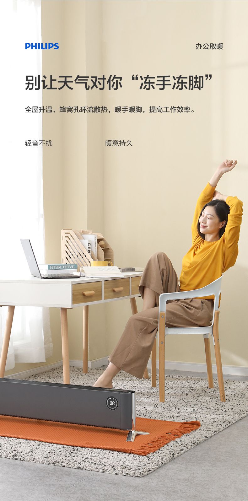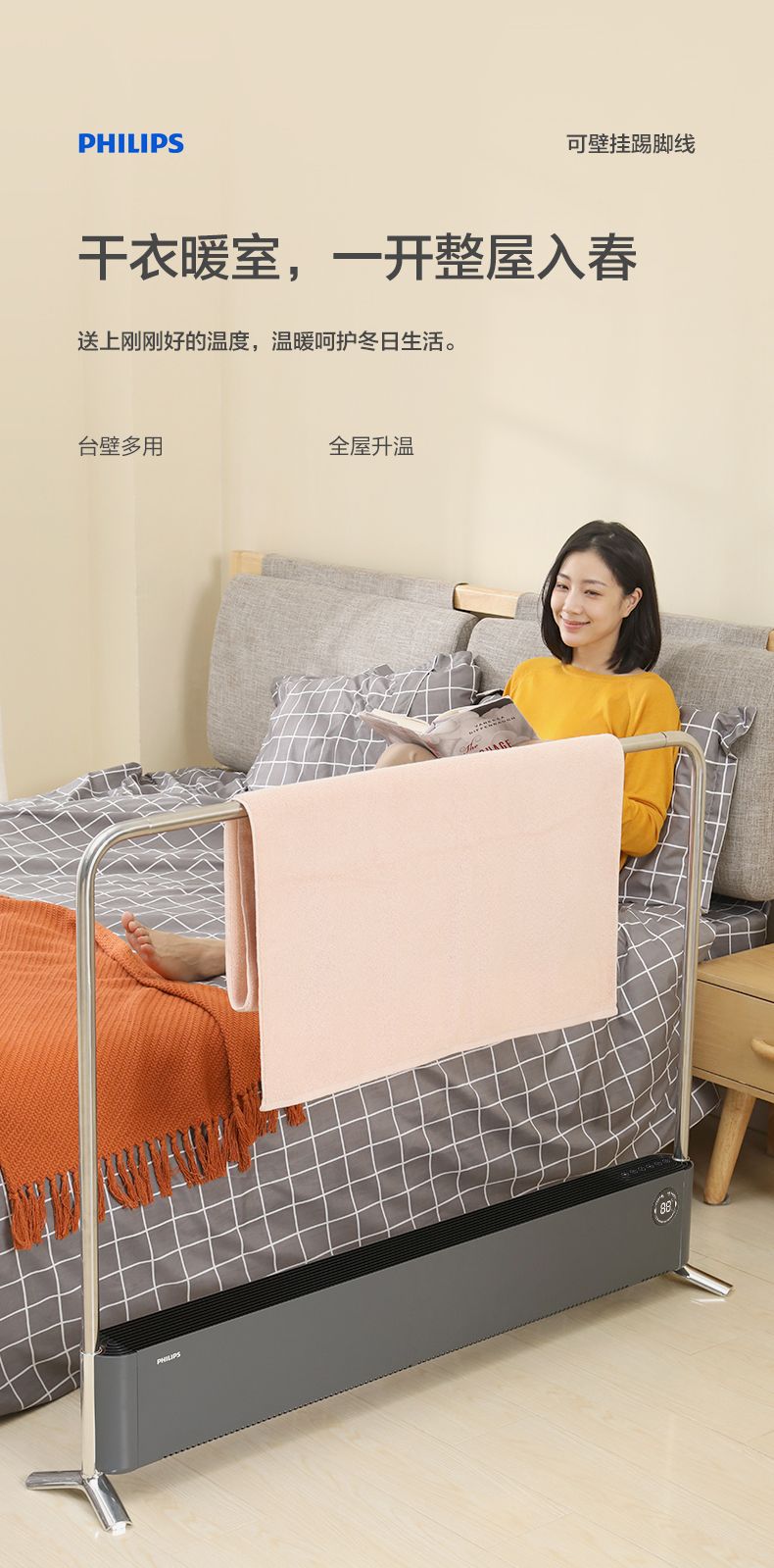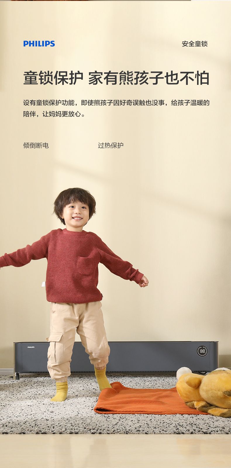 商品名称:飞利浦踢脚线取暖器AHR4144KS 移动地暖 电暖器 节能 遥控智能踢脚线地暖器