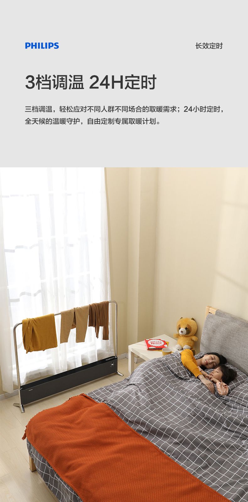 飞利浦踢脚线取暖器AHR4144KS 移动地暖 电暖器 节能 遥控智能踢脚线地暖器
