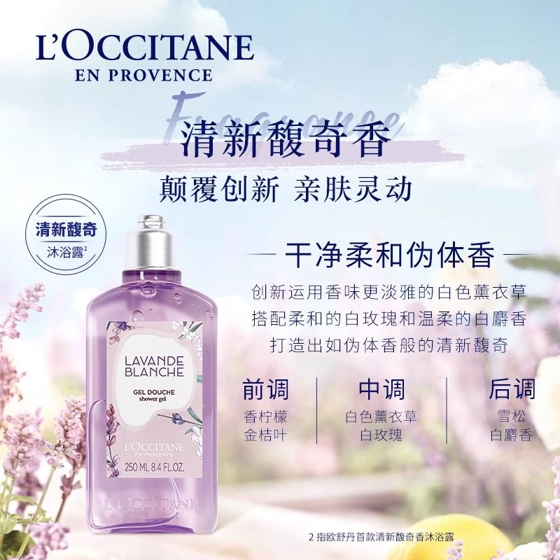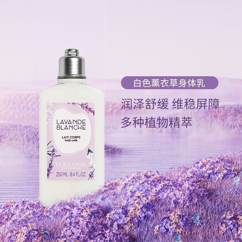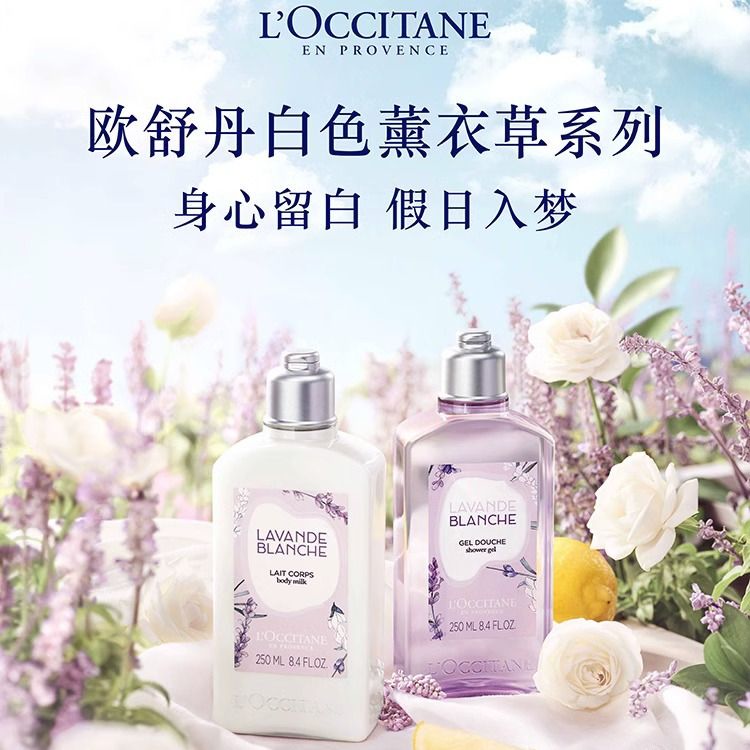 商品名称:L'Occitane/欧舒丹 白色薰衣草身体乳250ml+沐浴露250ml组合