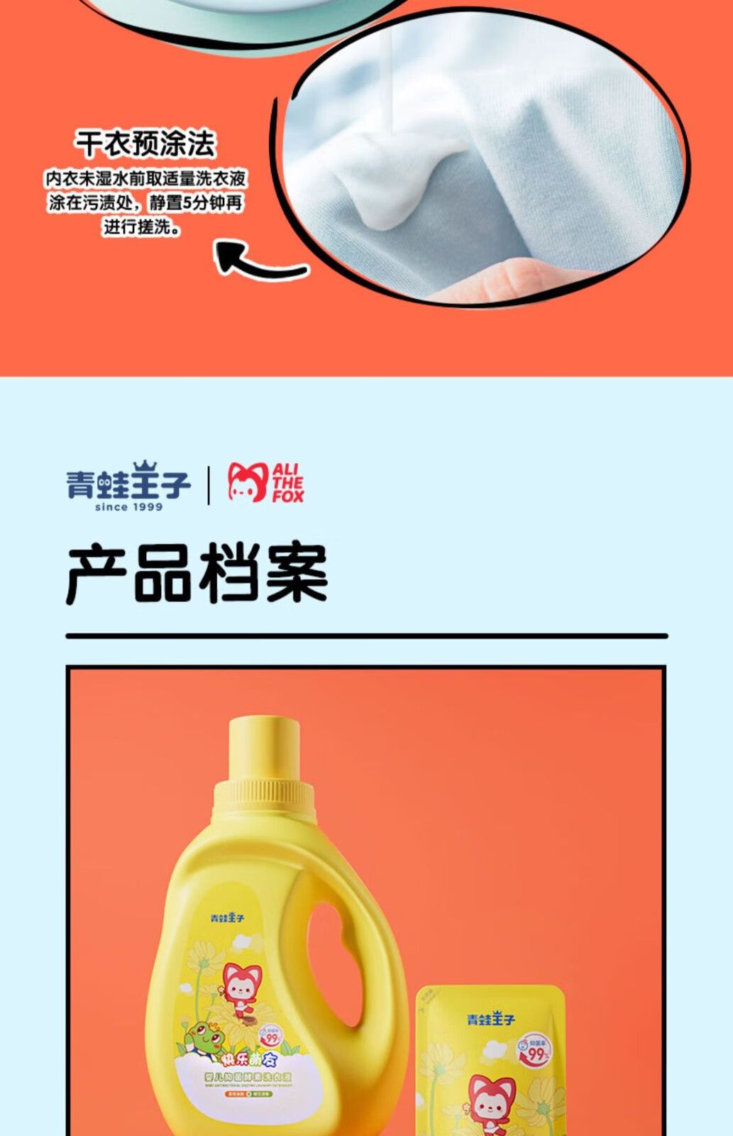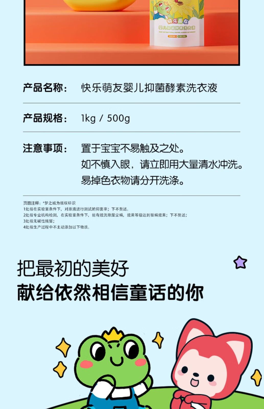 商品名称:青蛙王子快乐萌友婴儿抑菌酵素洗衣液1KG*1+500ml*3袋