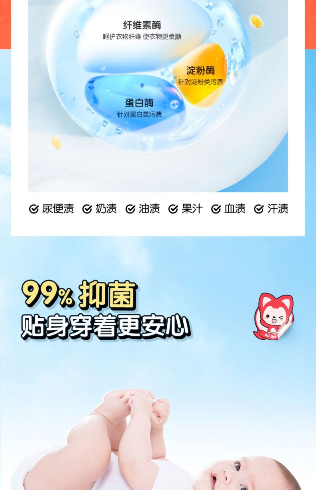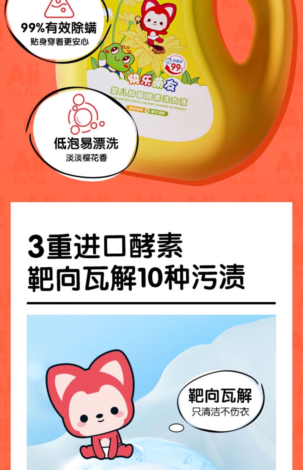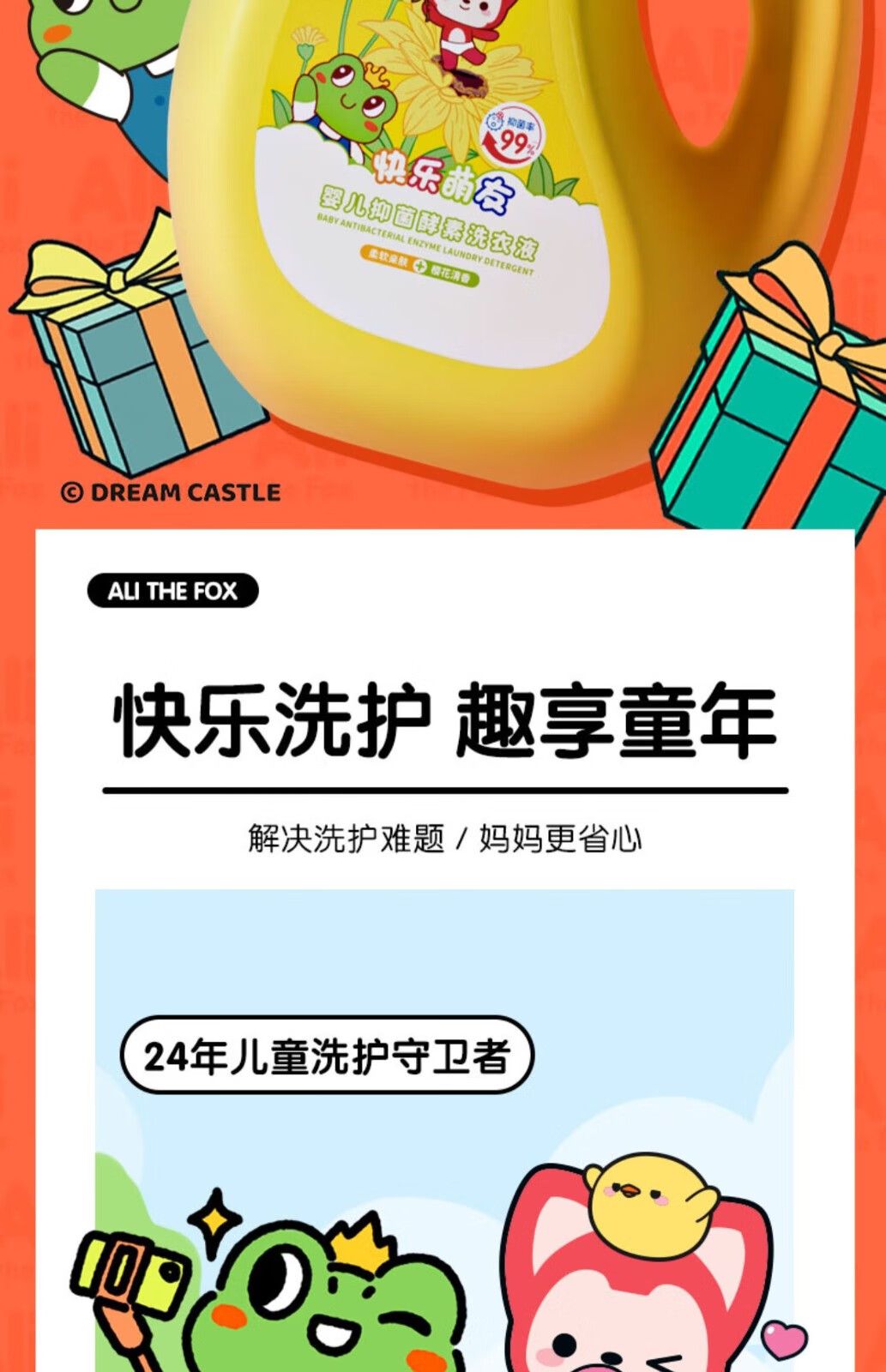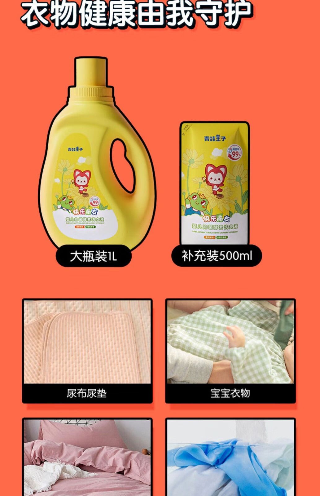 青蛙王子快乐萌友婴儿抑菌酵素洗衣液1KG*1+500ml*3袋