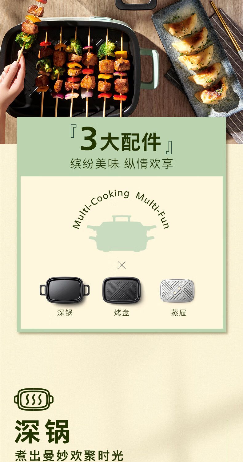 商品名称:飞利浦多用途锅HD2250 多功能电火锅 烤肉锅 安心涂层轻油少烟多档控温 1400W大功率料理锅