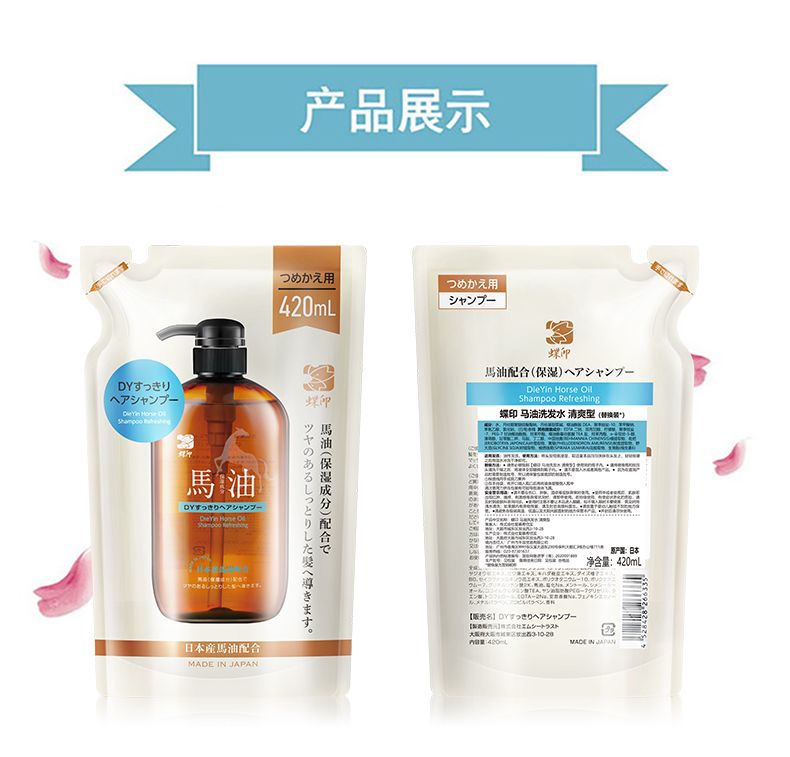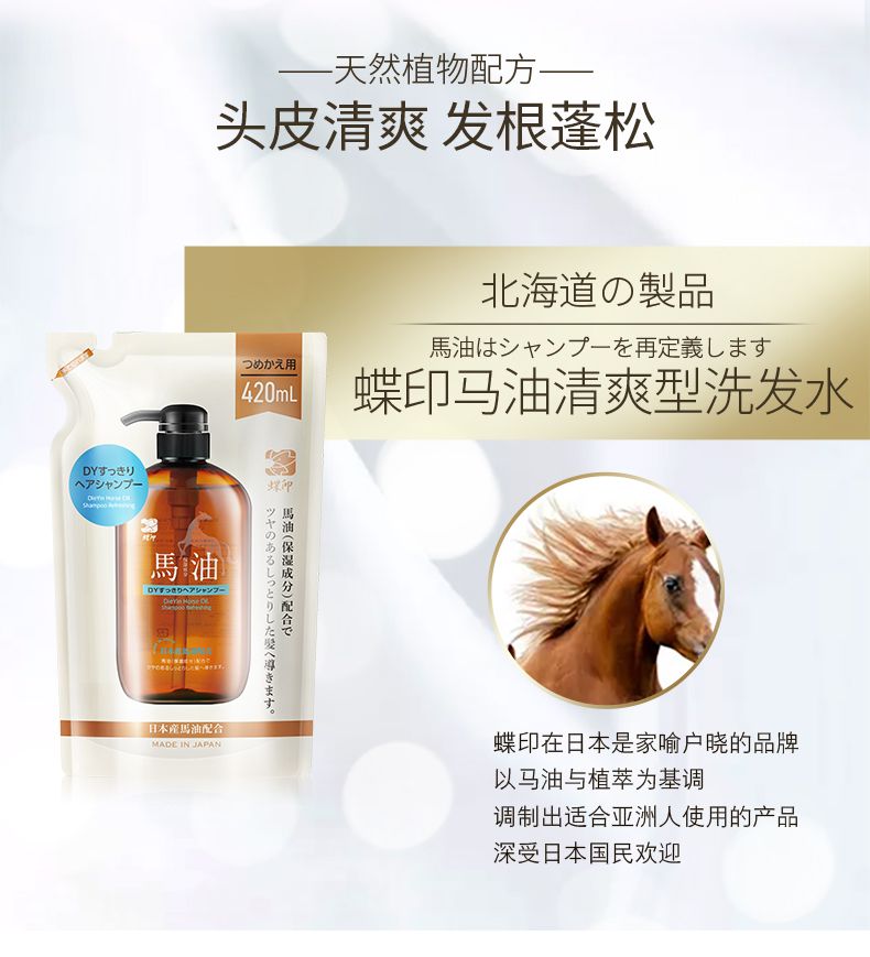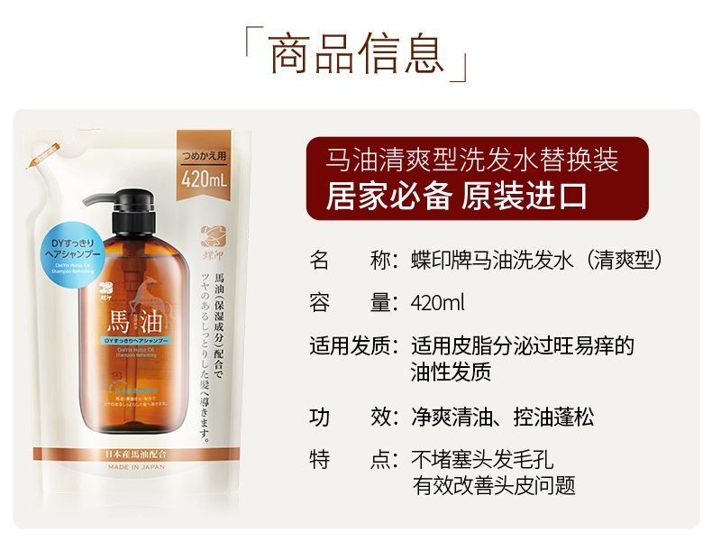 商品名称:日本蝶印牌 马油洗发水(清爽型)替换装420mL