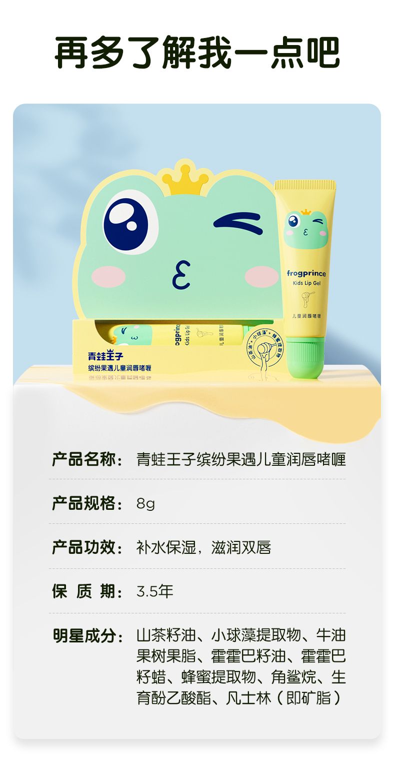 商品名称:青蛙王子缤纷果遇儿童润唇啫喱8g*2支