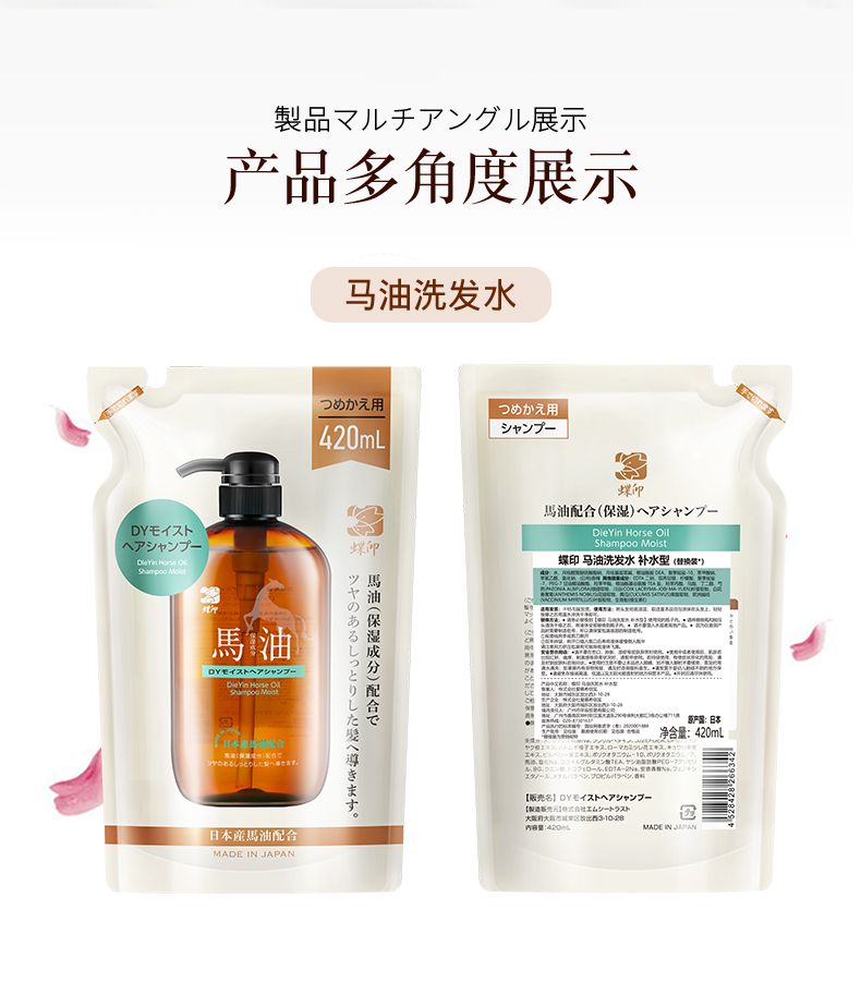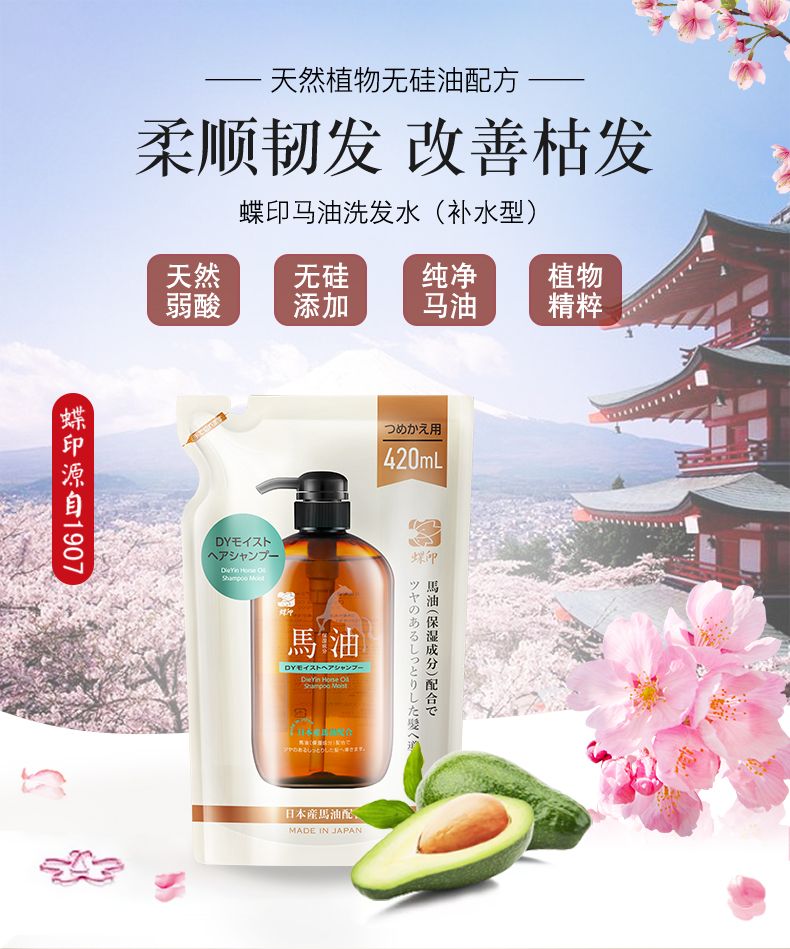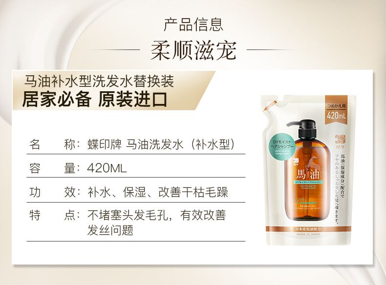 商品名称:日本蝶印牌 马油洗发水(补水型)替换装420mL