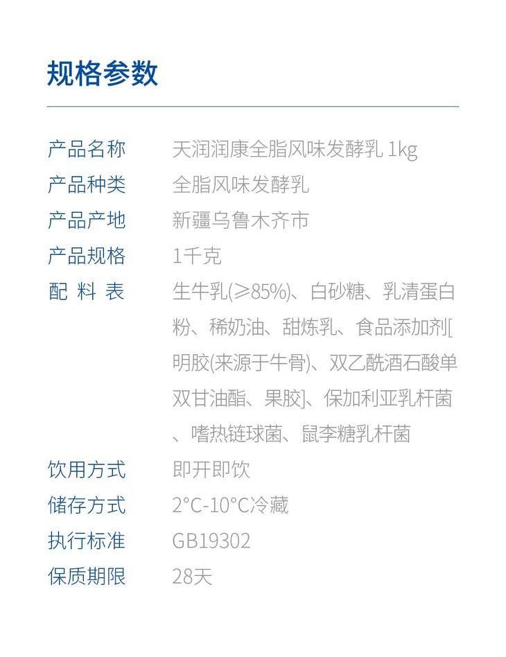 商品名称:天润润康全脂风味发酵乳(原味)1kg/桶*2桶