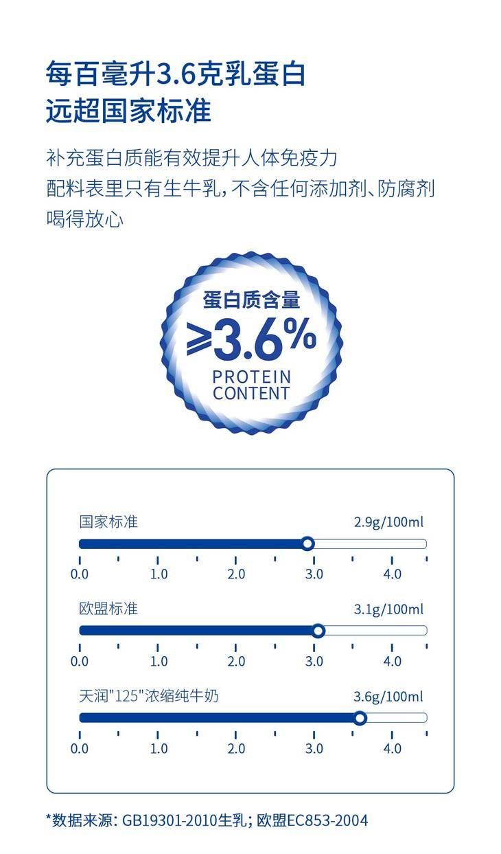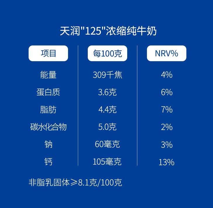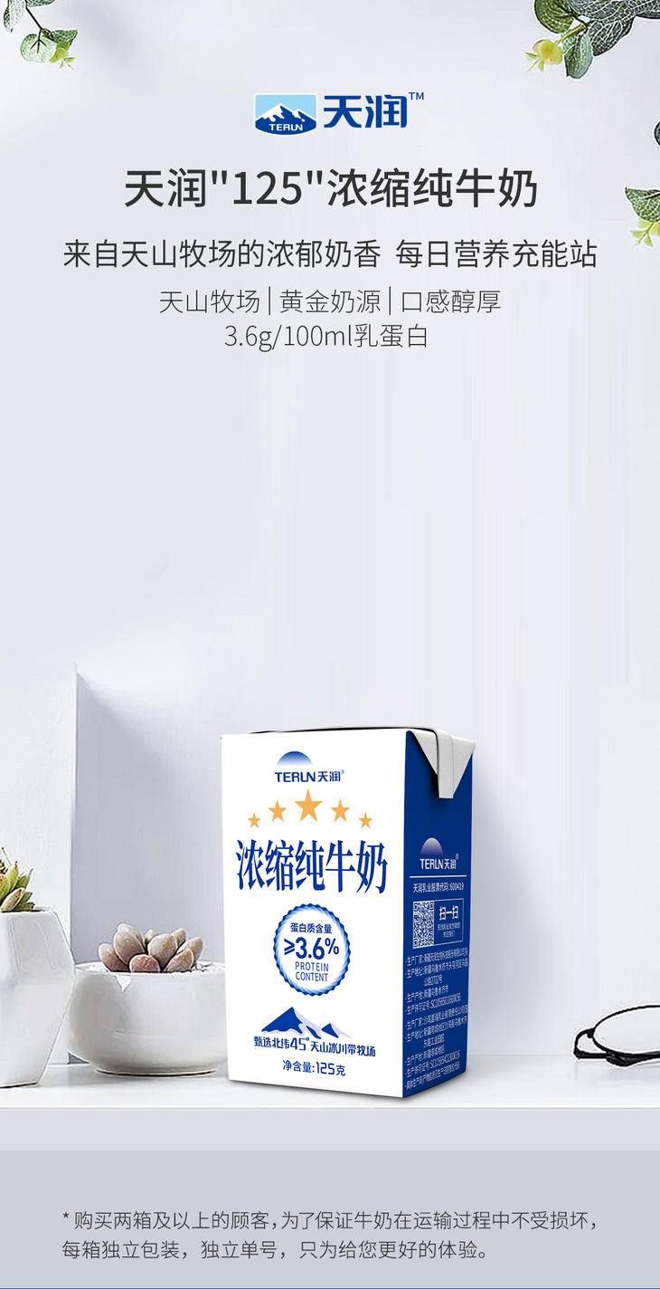 天润浓缩纯牛奶康美转125g*20盒/箱