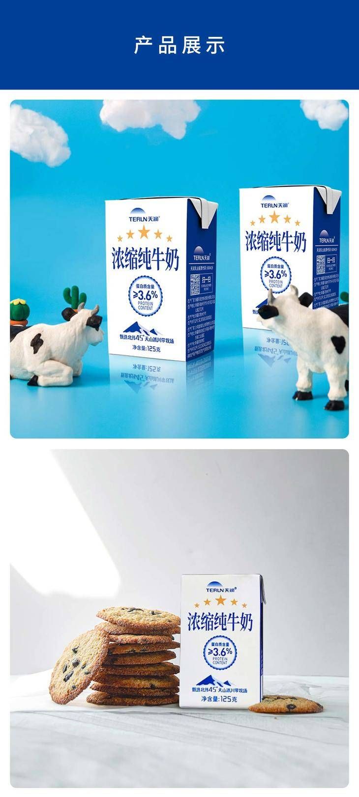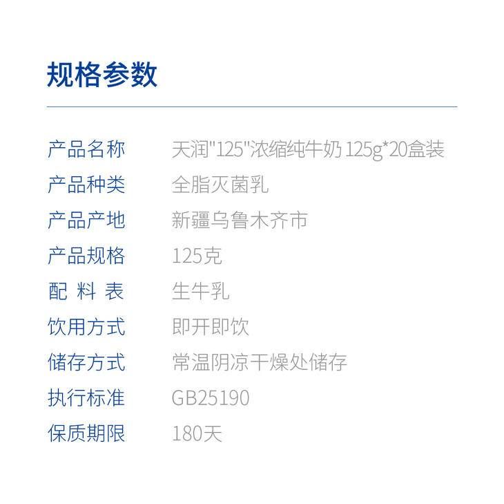 商品名称:天润浓缩纯牛奶康美转125g*20盒/箱