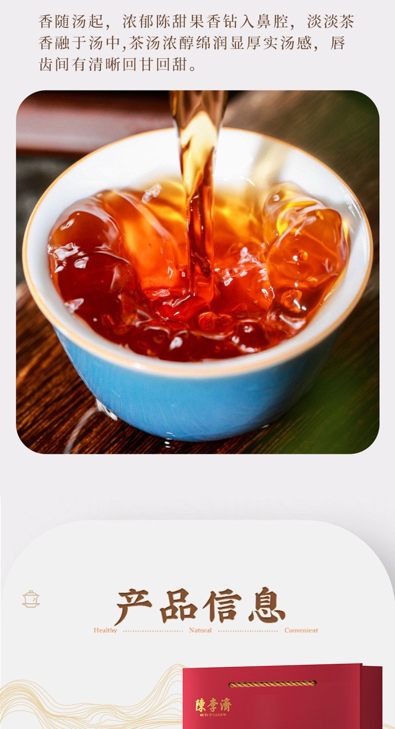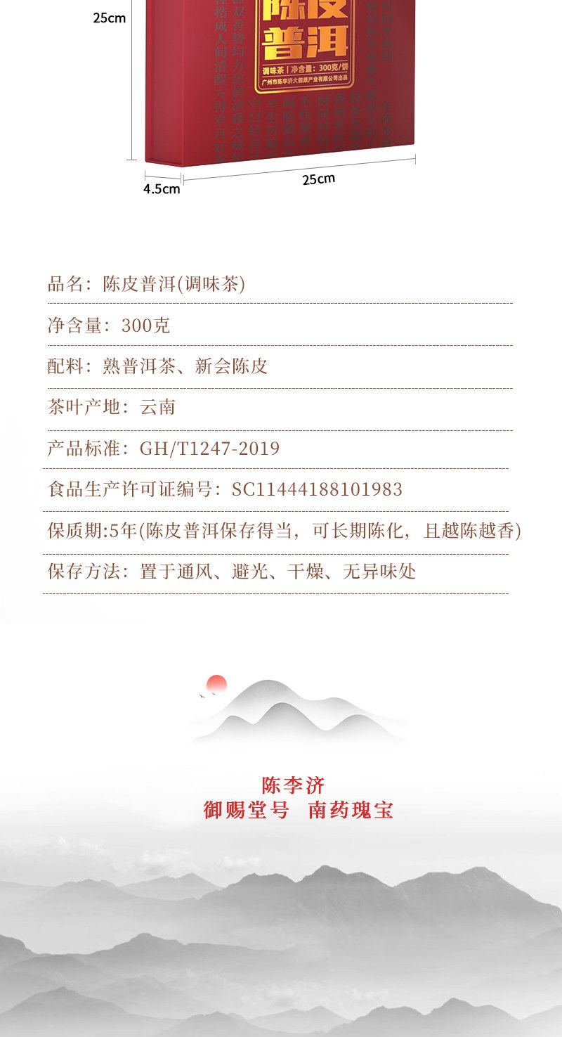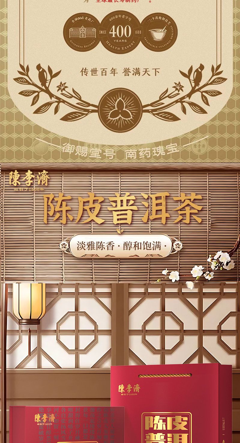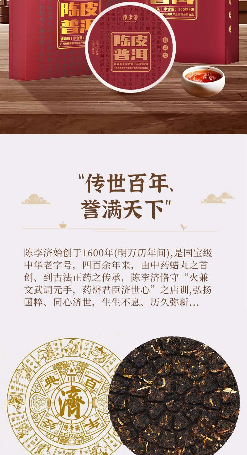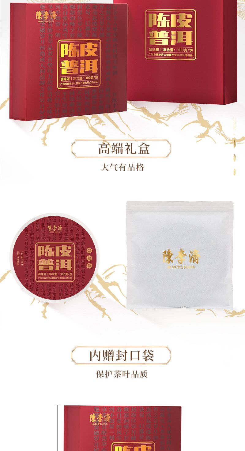 商品名称:陈李济陈皮普洱茶补贴价(熟普)300g/1盒礼盒装带手提袋