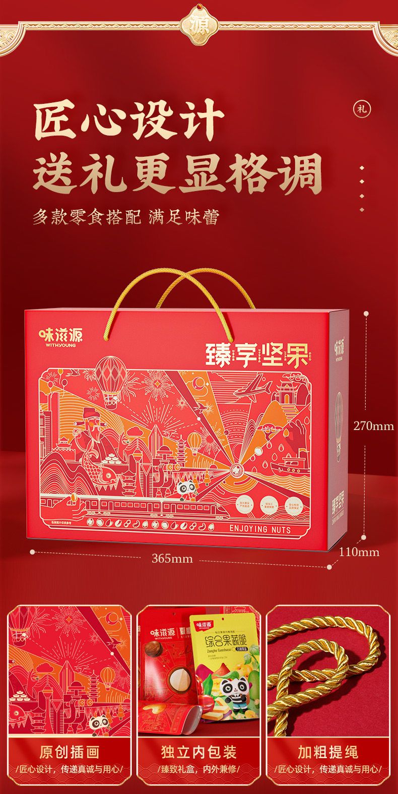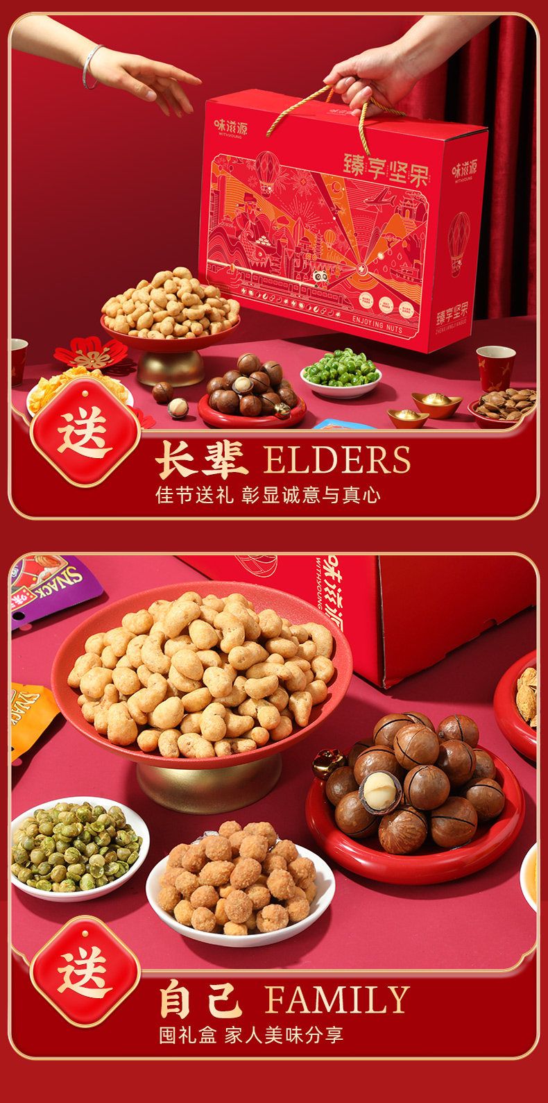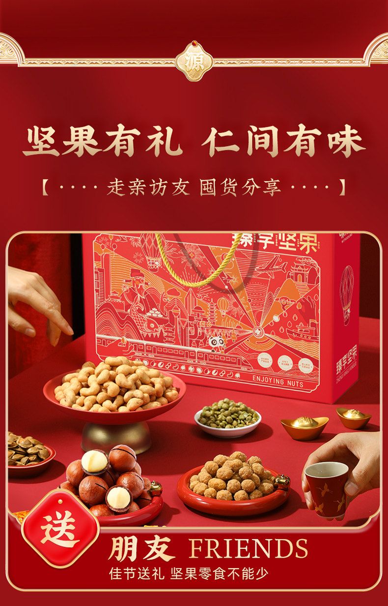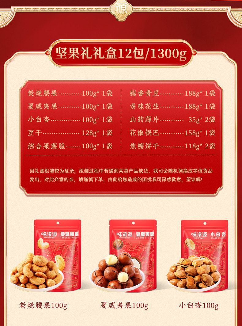 味滋源臻享坚果红色手提绳大礼包休闲坚果炒货网红爆款过节节日送礼品送长辈9701101