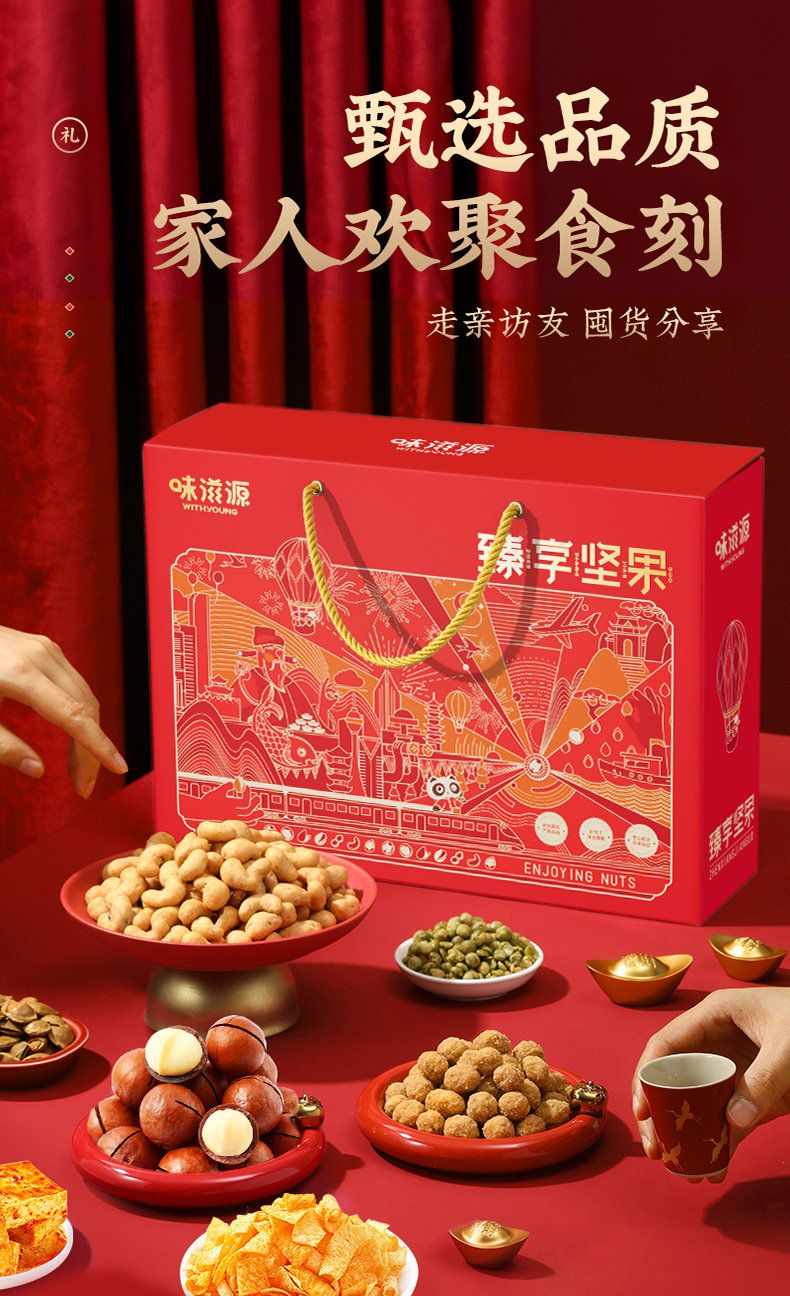 商品名称:味滋源臻享坚果红色手提绳大礼包休闲坚果炒货网红爆款过节节日送礼品送长辈9701101