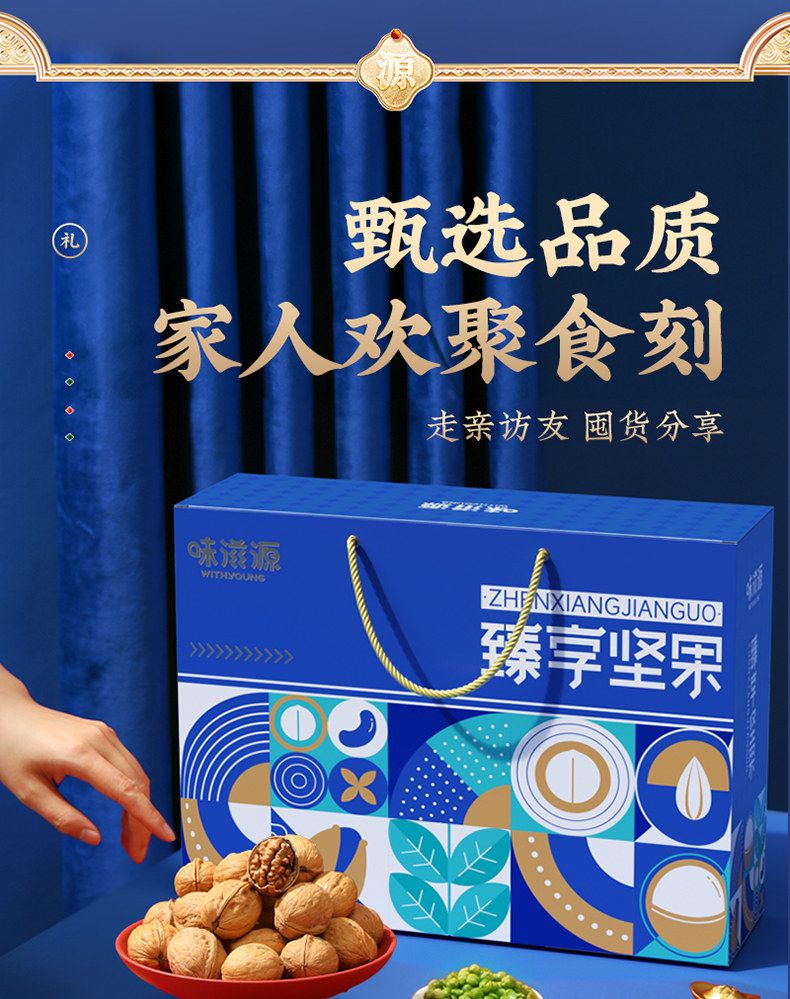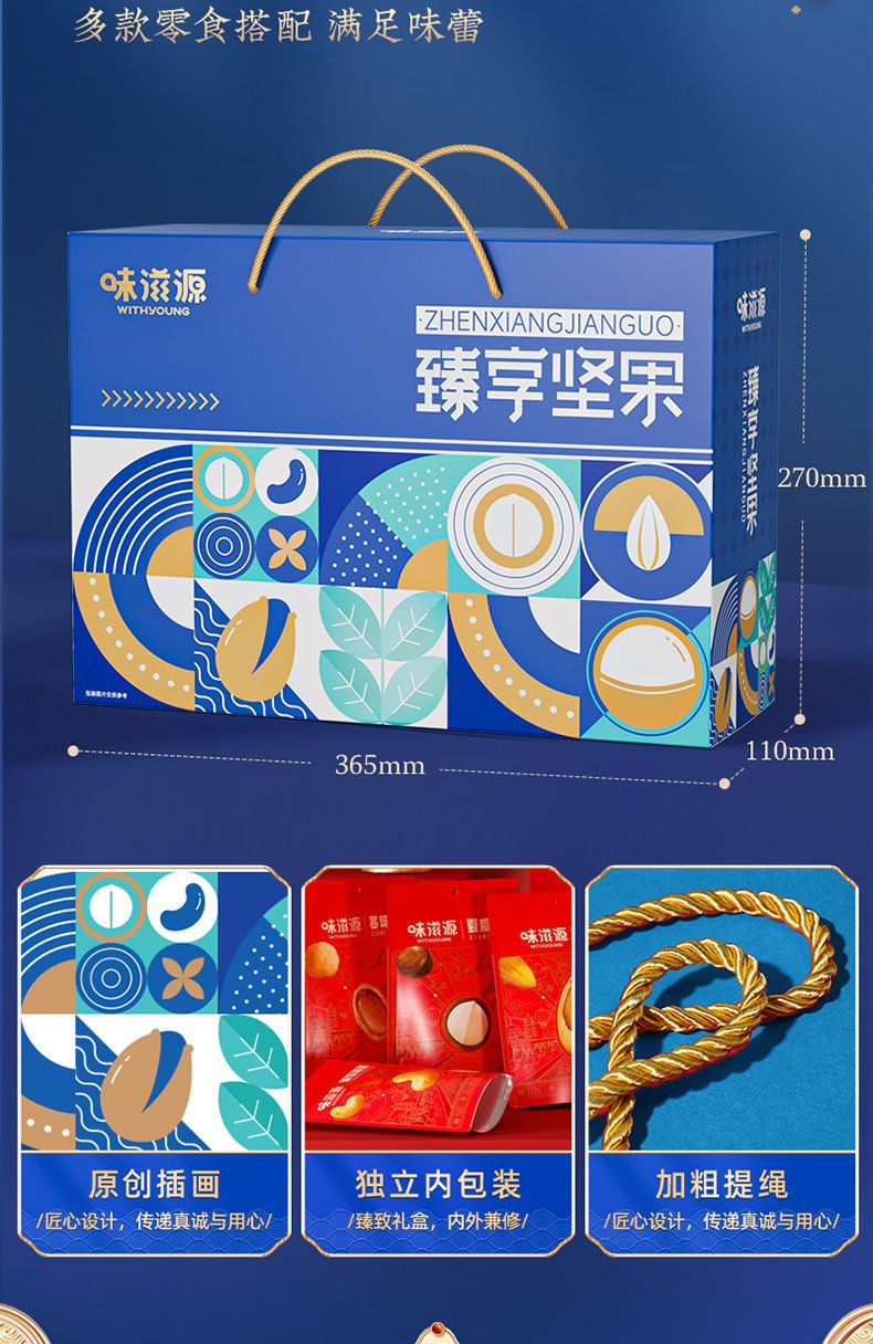 商品名称:味滋源臻享坚果蓝色手提绳大礼包休闲坚果炒货网红爆款过节节日送礼品送长辈9701102