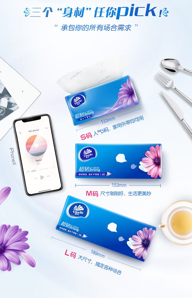 商品名称:维达(Vinda)抽纸 超韧130抽*24包S码 湿水不易破 卫生纸 纸巾餐巾纸 整箱【V2239-B】