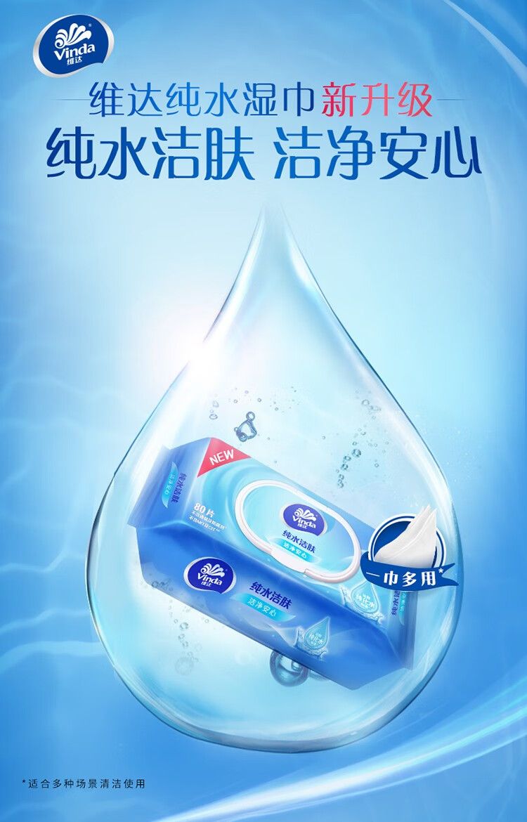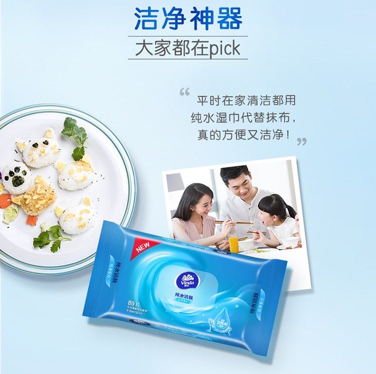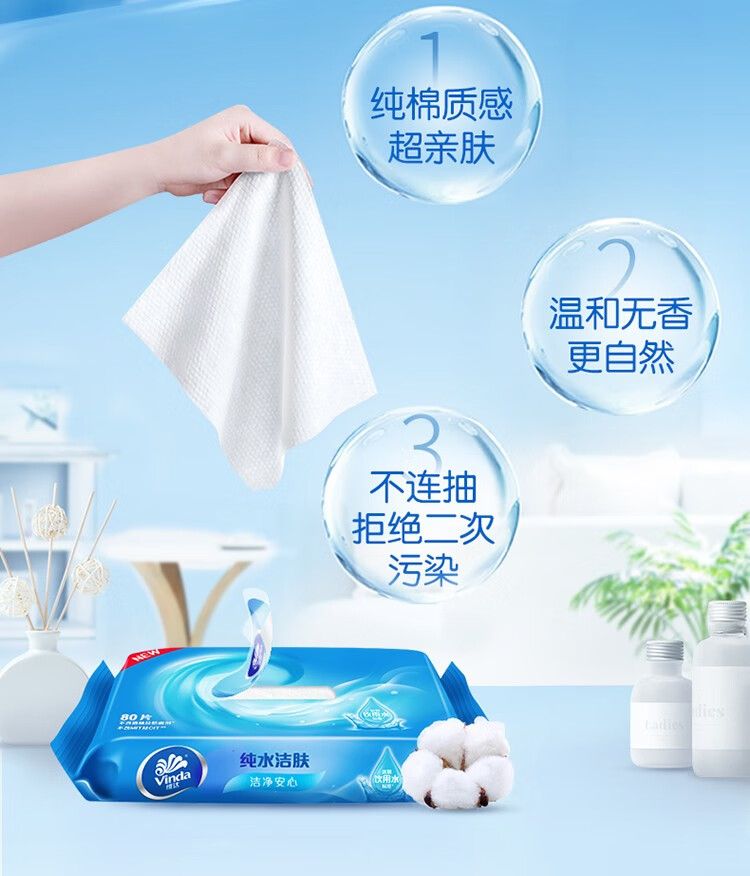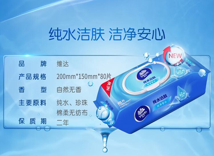 商品名称:维达洁肤杀菌卫生湿巾80片家庭装房事带盖抽取成人湿纸巾家用无香 3包【3xVW1028】