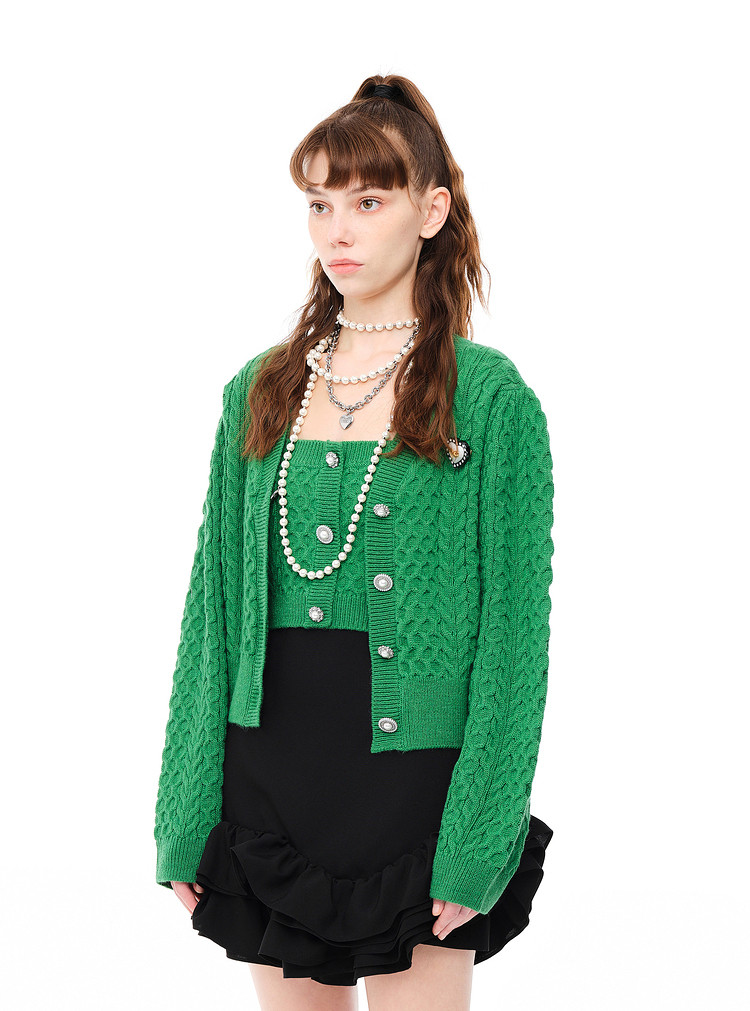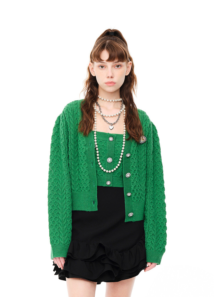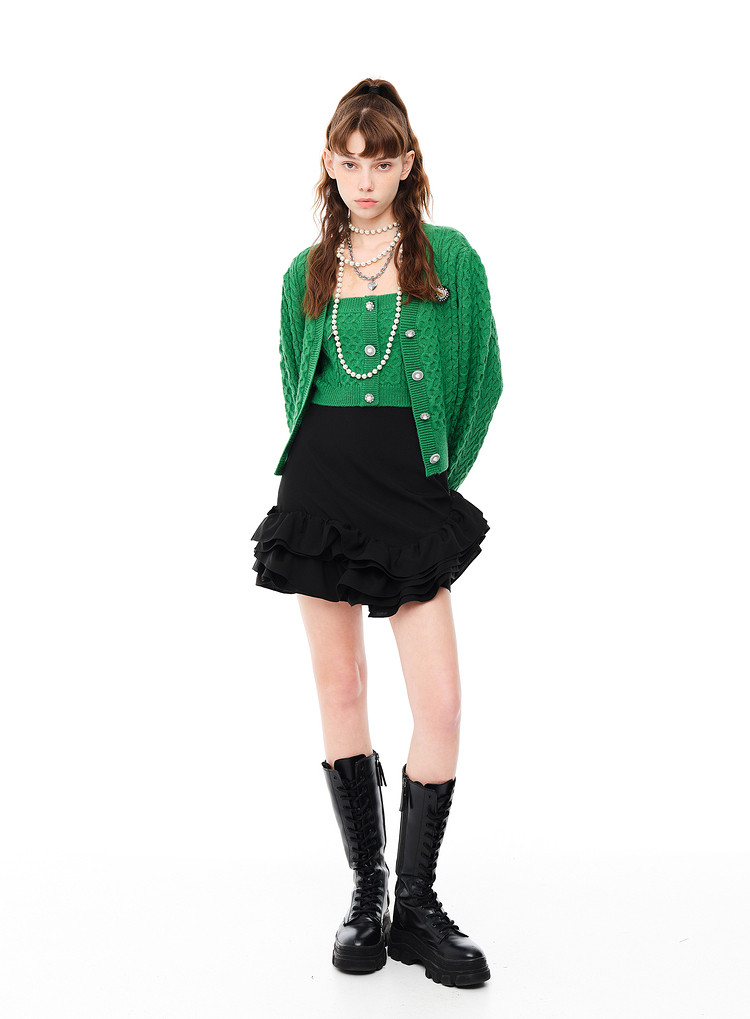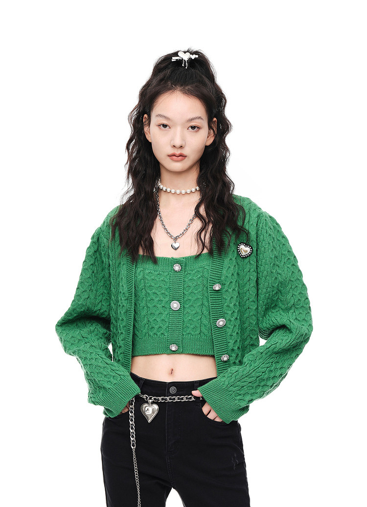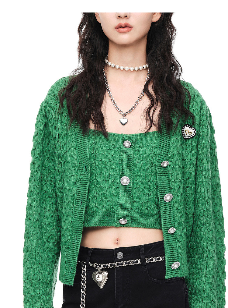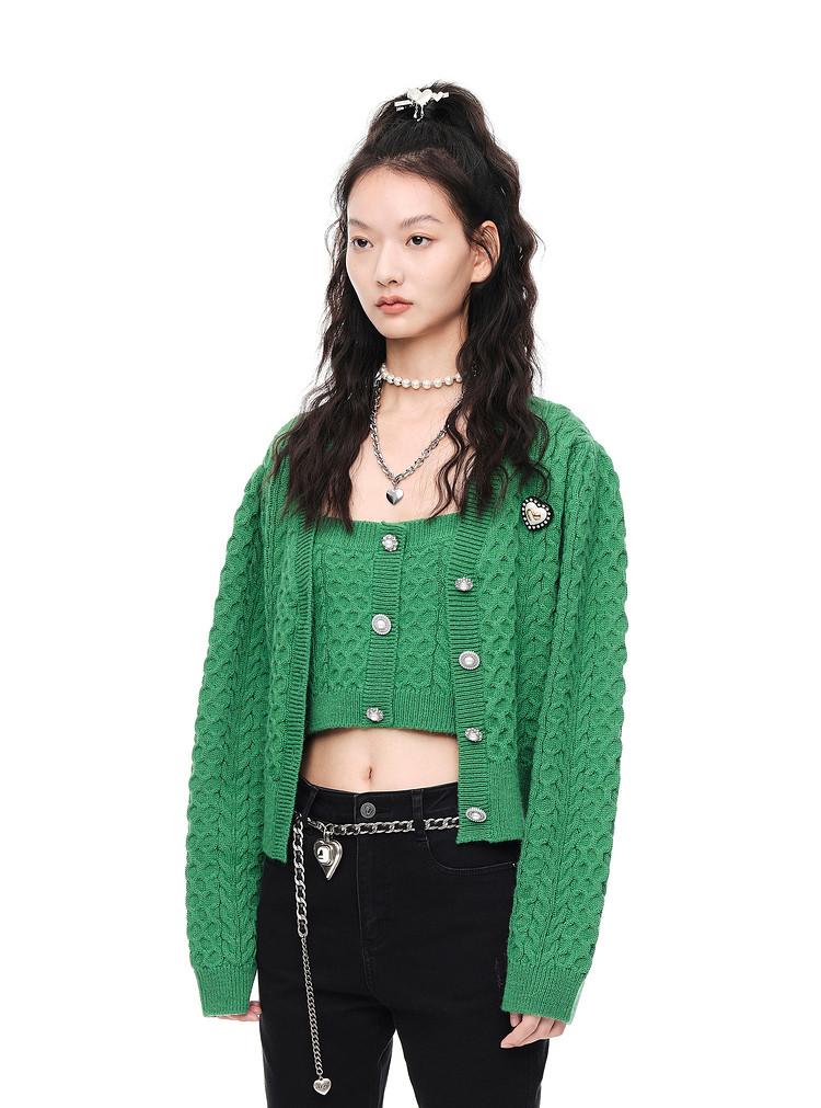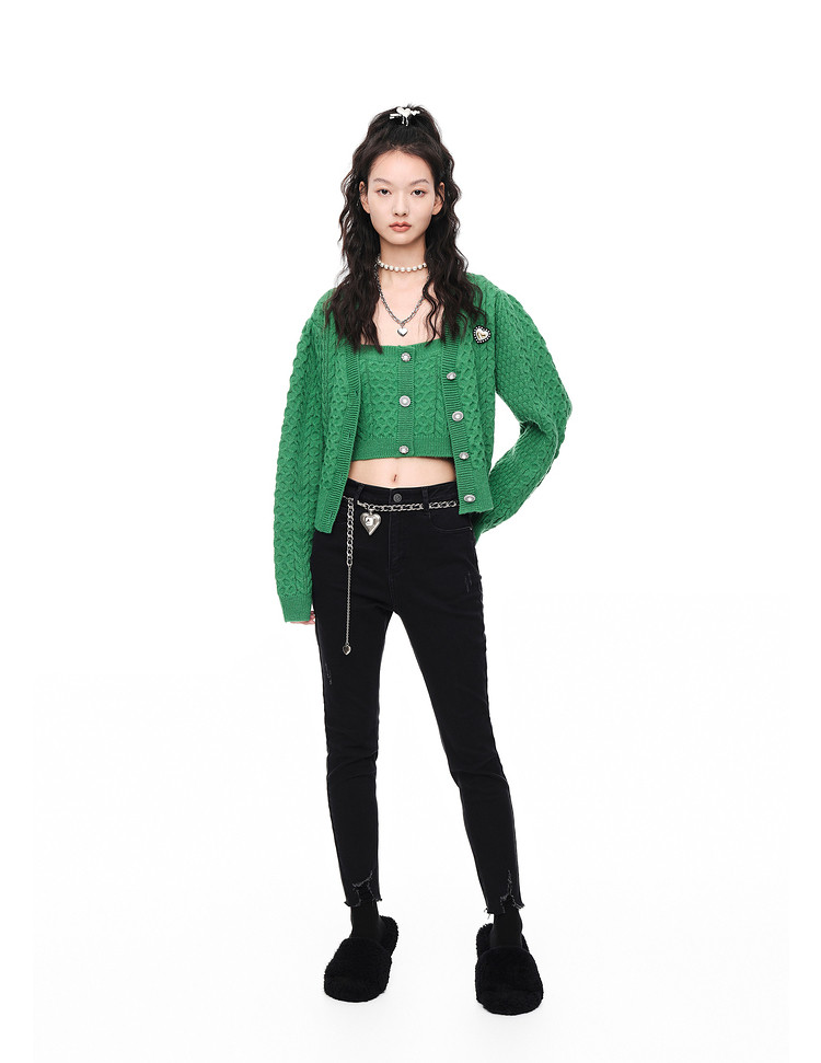 地素秋冬针织吊带可内搭纯色复古纽扣上衣女 979147
