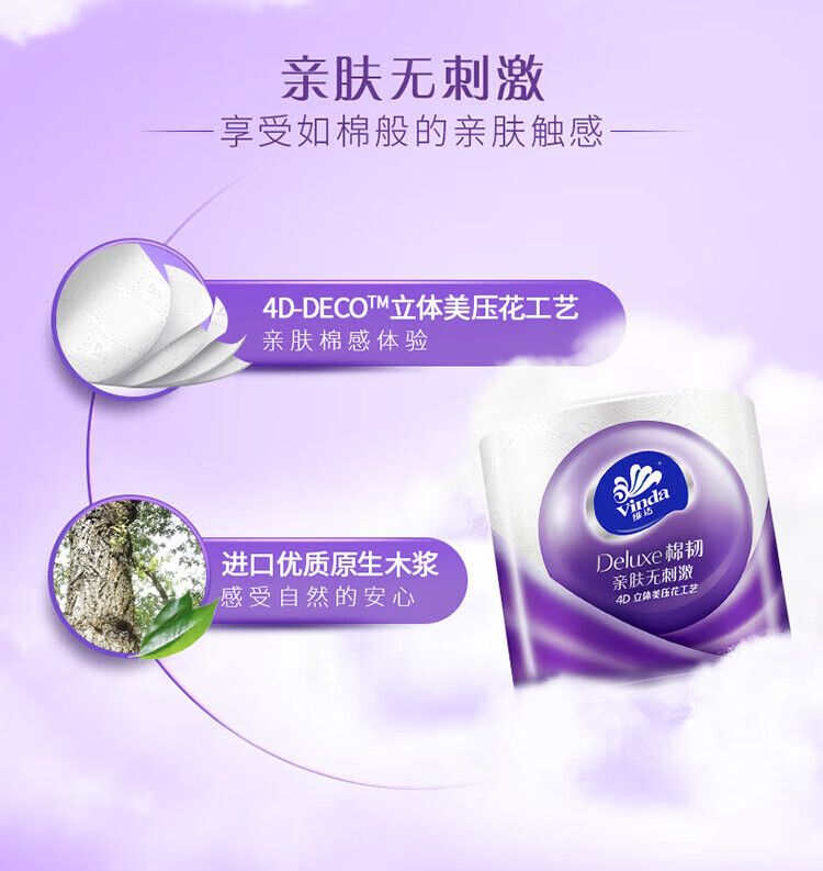 商品名称:维达(Vinda) 卷纸 棉韧4层110克12卷*2提卫生纸家用超值24卷【2xV4669】